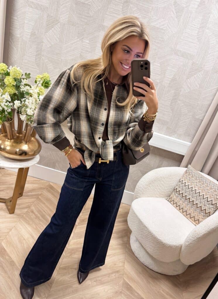 Geruite Blouse Bruin/Beige aantal