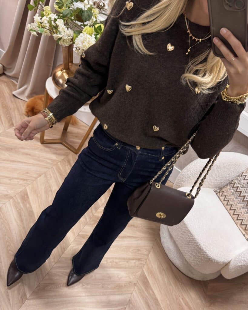 Wide Leg Jeans Queen Heart Dark Blue aantal