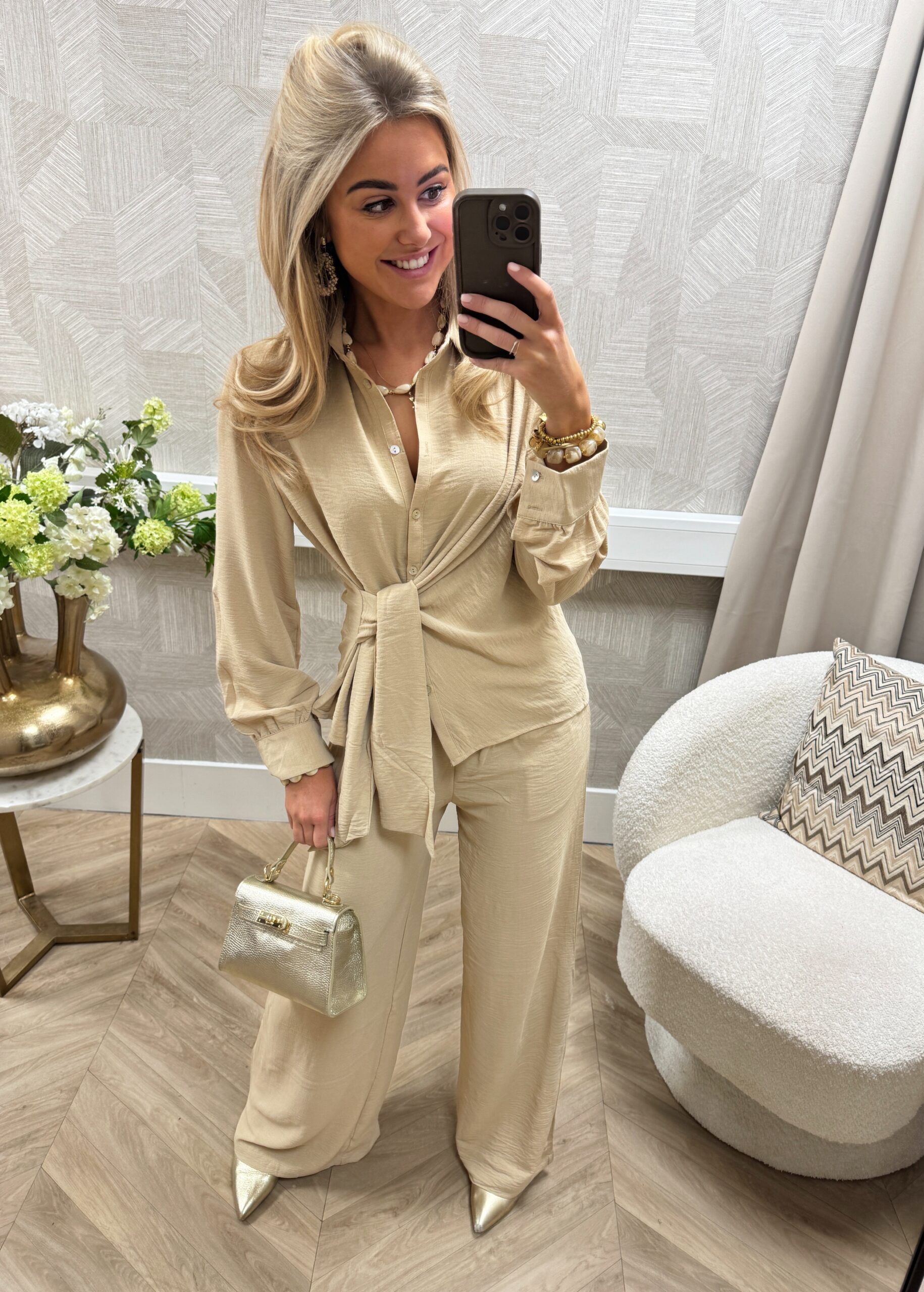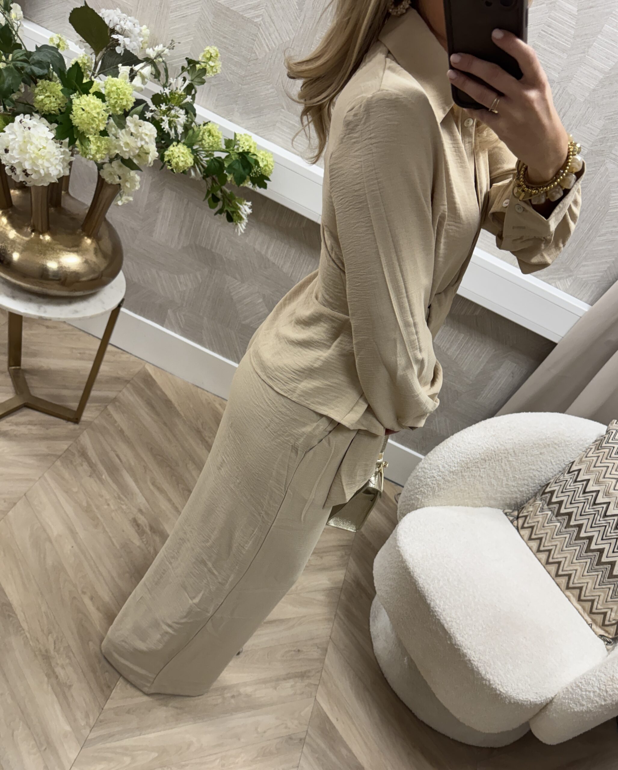 Een fijne basis set perfect voor het voorjaar! De blouse valt luchtig en soepel, terwijl de wijdvallende broek zorgt voor comfort met een elegante touch. Perfect samen als set, maar ook los van elkaar eindeloos te combineren.