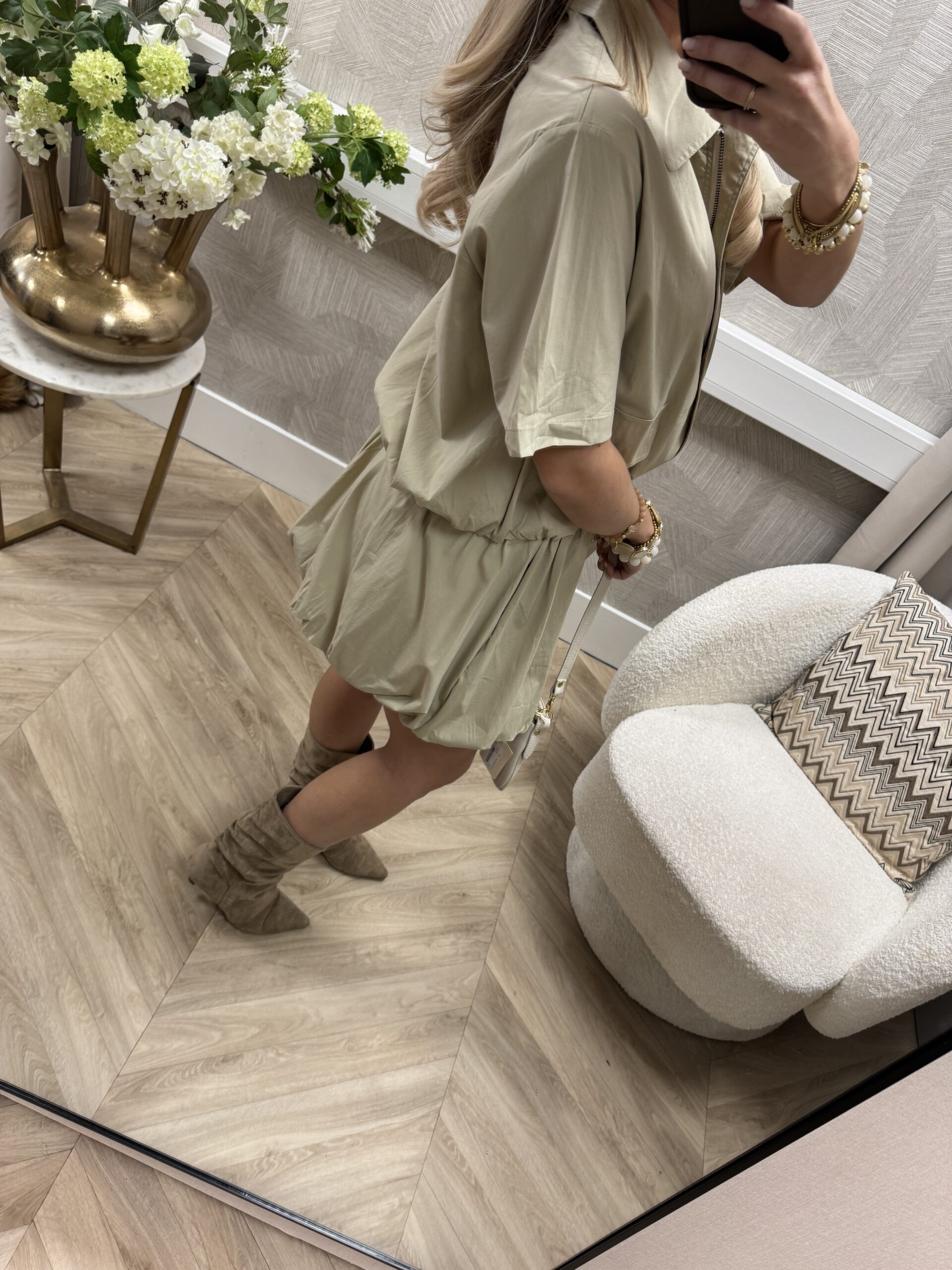 Een stijlvolle set met een speelse twist. Het ballonrokje geeft volume en een vrouwelijke look, terwijl het jasje zorgt voor een stoere en verzorgde uitstraling. Samen een mooie combinatie die zowel casual als iets gekleder te dragen is, maar ook erg leuk om los van elkaar te stylen.