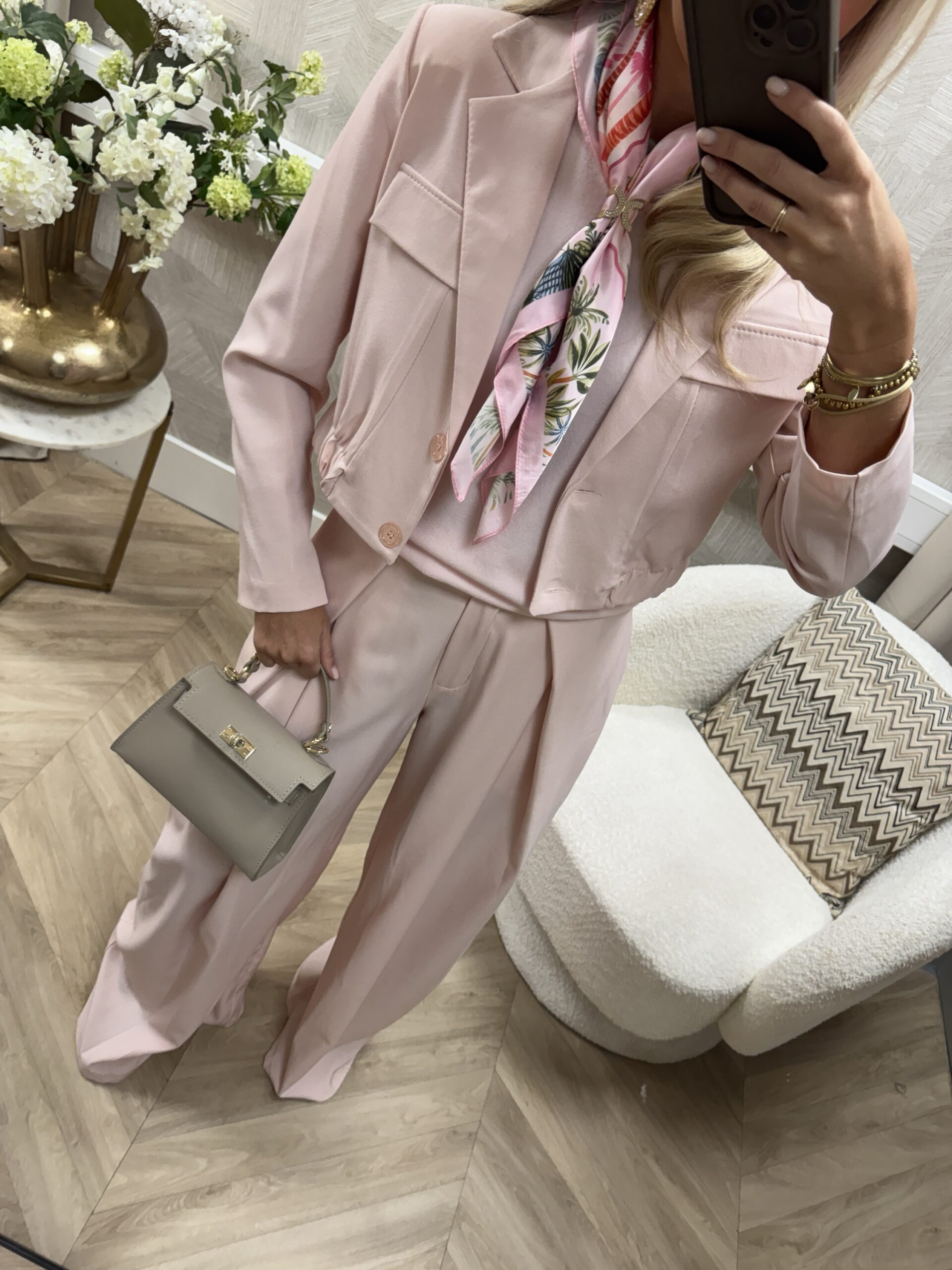 Een stijlvolle cropped blazer van Ambika in het roze. De korte, moderne blazer geeft een trendy uitstraling. Perfect om te combineren met de bijpassende pantalon die ook online staat.