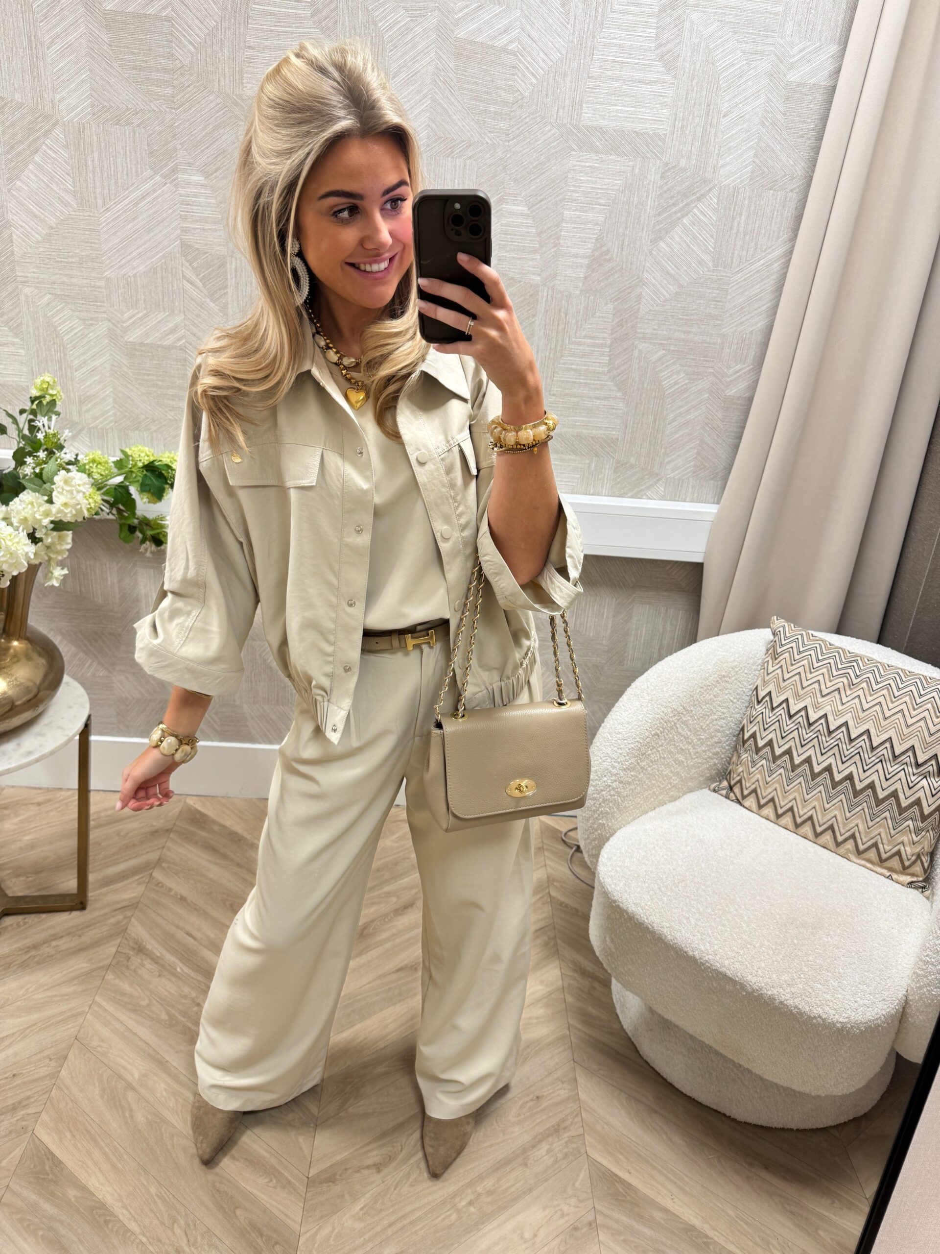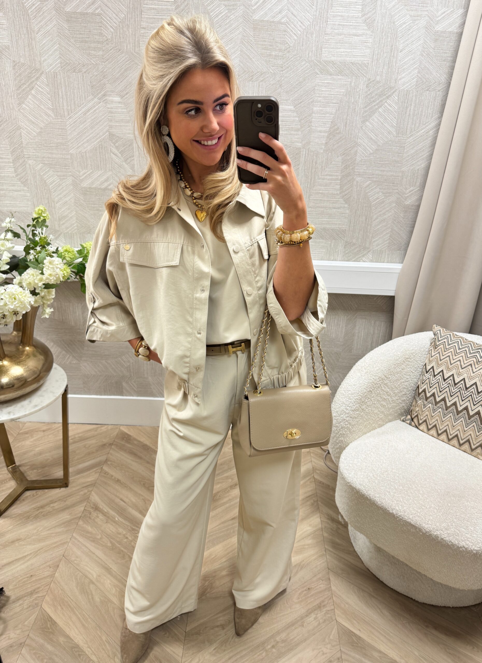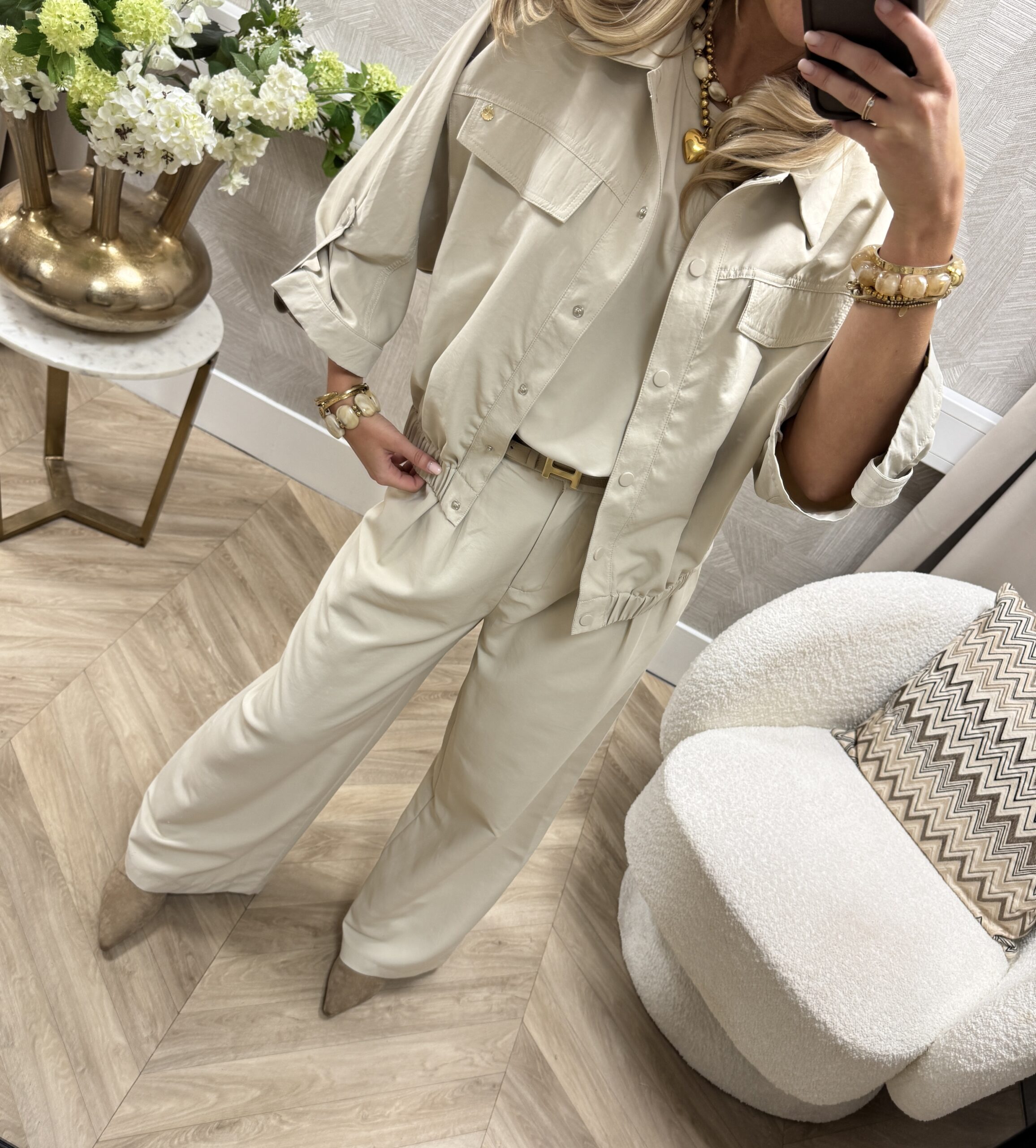 Dit Ambika jasje heeft een stoere maar chique uitstraling door de rechte, iets kortere fit. De borstzakken en knoopsluiting geven ‘m een speels detail, terwijl de elastische onderkant zorgt dat hij mooi in model valt. Perfect te combineren met de bijpassende broek of los op een jeans. De stof voelt soepel aan en draagt comfortabel.