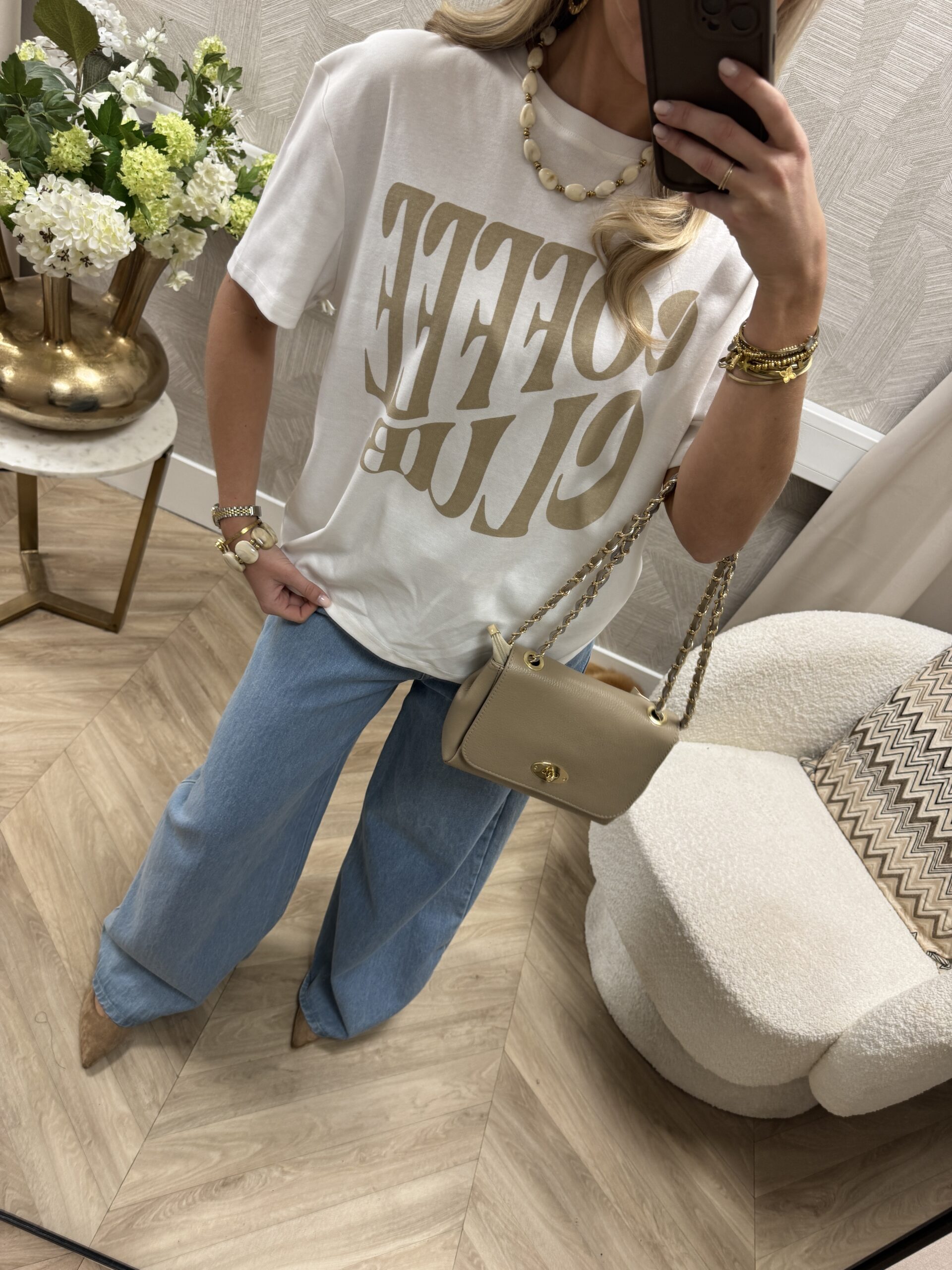 • Opdruk Coffee Club in het beige