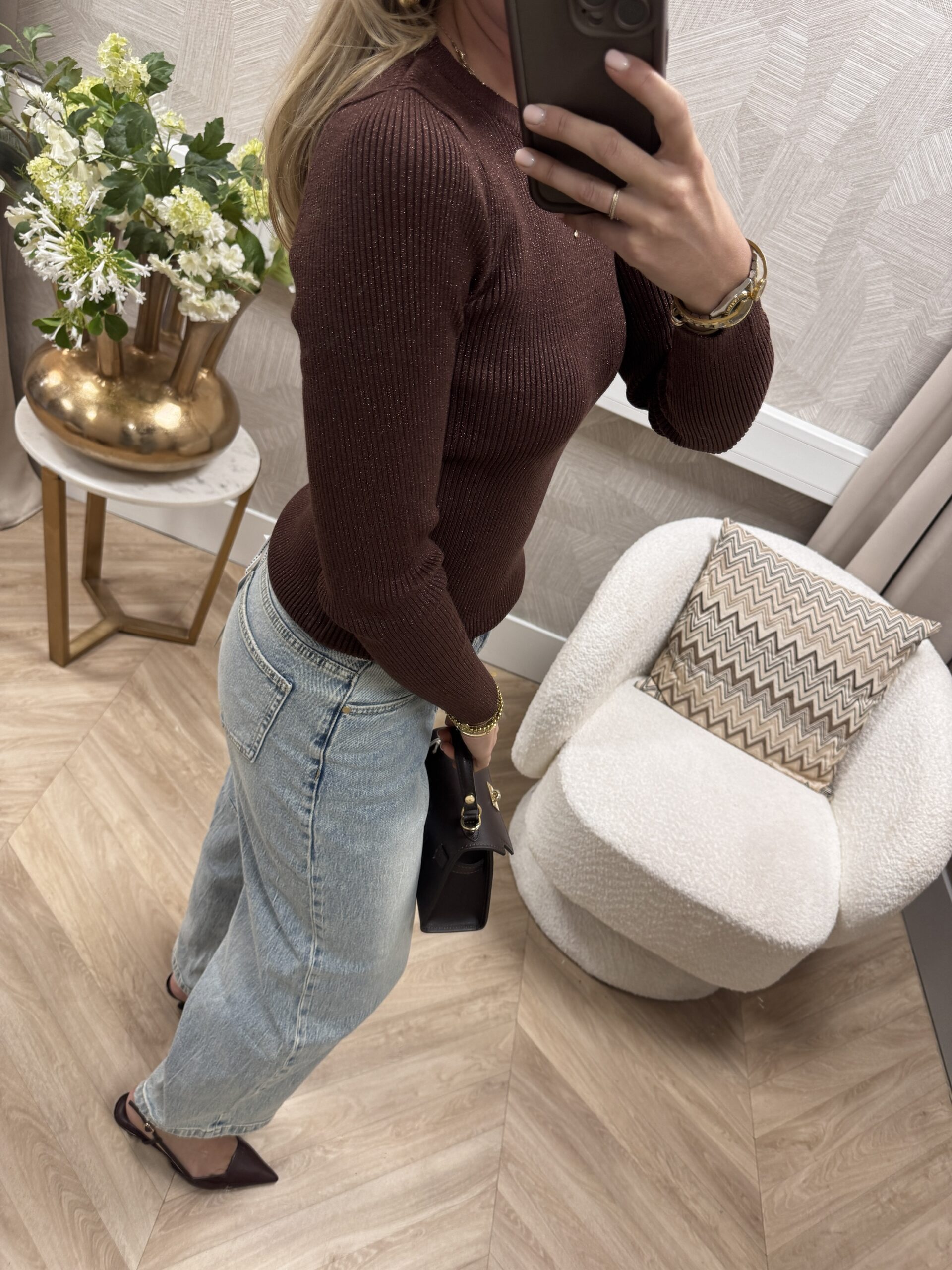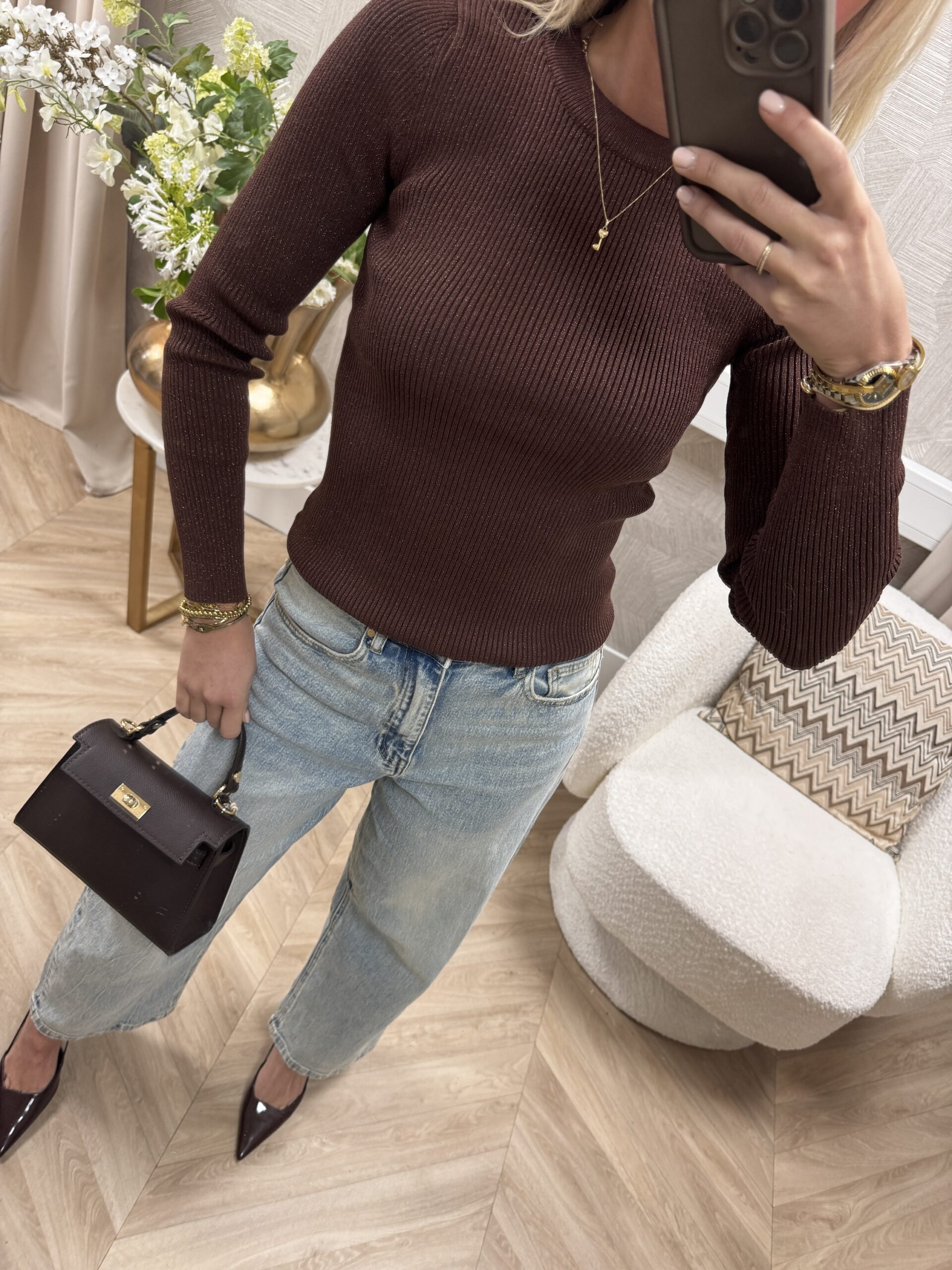 Prachtig fijngebreid ribtruitje met subtiele glitter! De stof heeft een mooie, chique sparkle zonder té opvallend te zijn. Het model sluit mooi aan op het lichaam, is super stretchy en voelt heerlijk zacht aan. Ideaal als basic met een luxe touch.