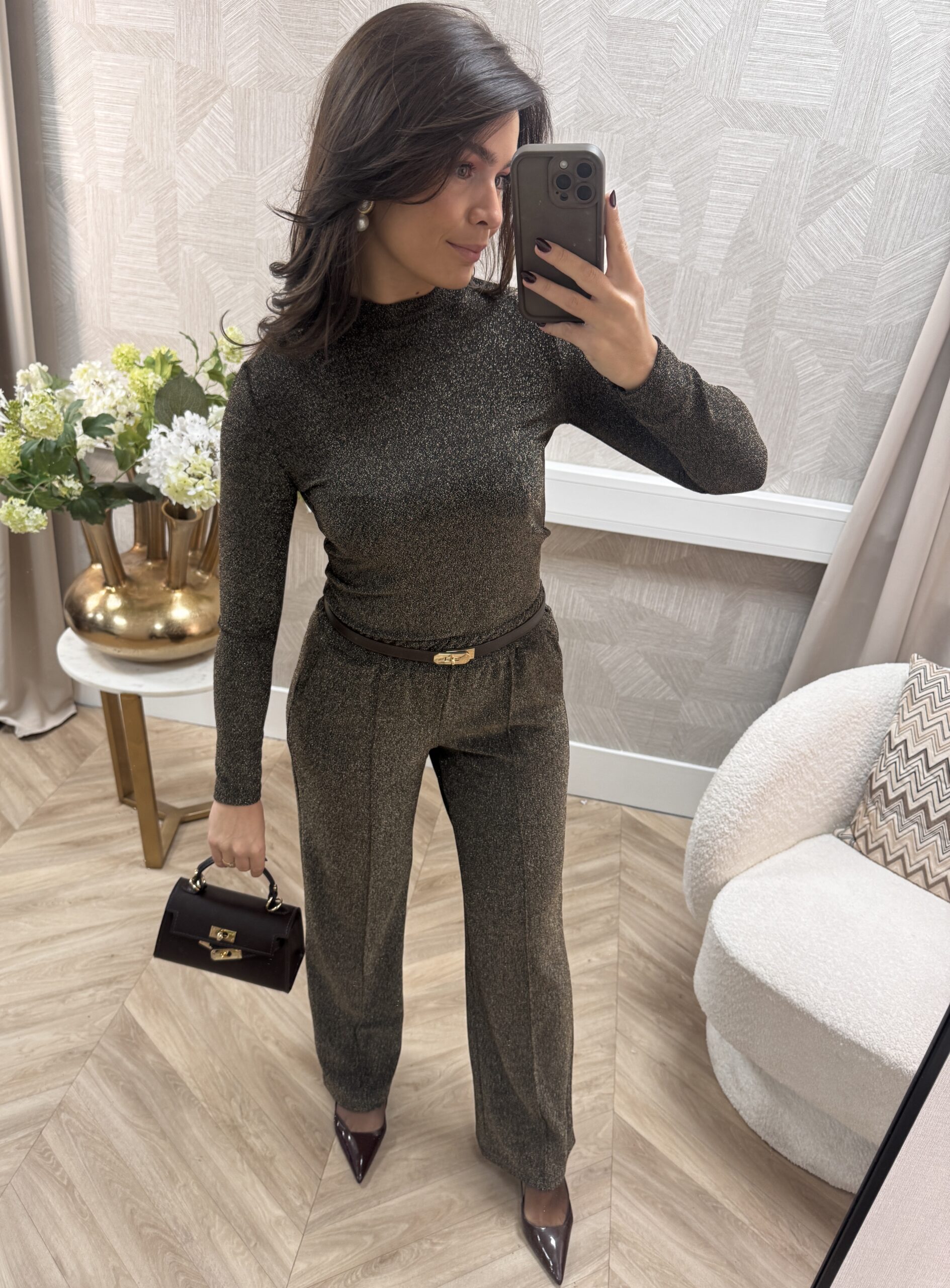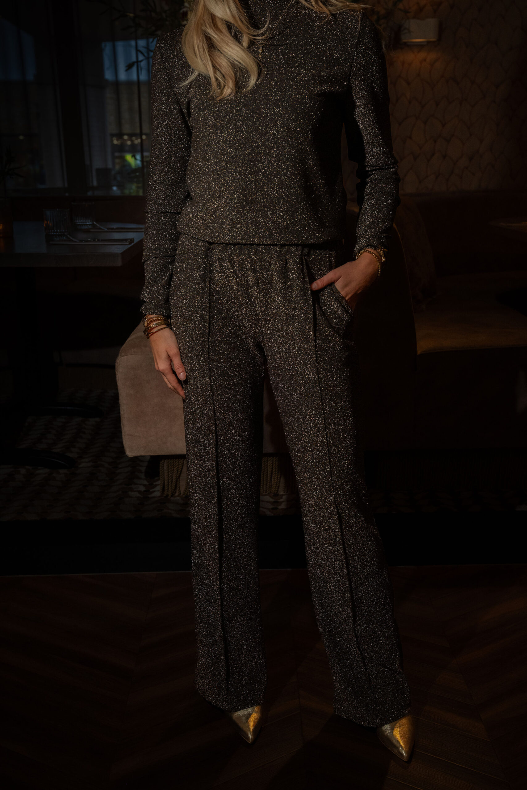 Wauw, hoe leuk zijn deze glitter tops?! De stof heeft een subtiele sparkle. Het model heeft een licht aangesloten fit, een hoge hals en lange mouwen — stylish, comfy én perfect voor de feestdagen. Combineer hem met de matching glitter broek voor een complete set, of draag hem los op een leren broek, rok of jeans.