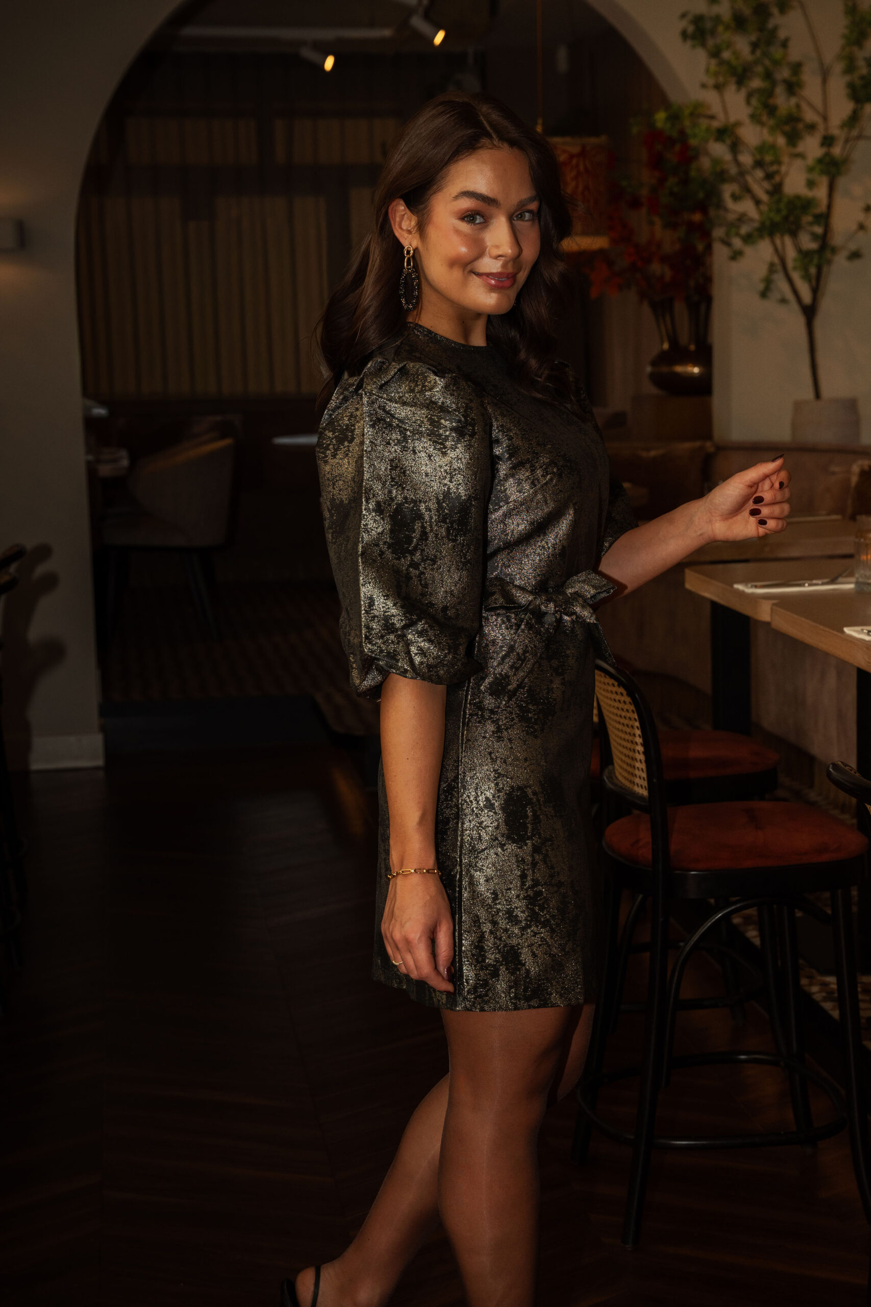Een echte party eye-catcher door de luxe metallic glans en de subtiele structuur in de stof.