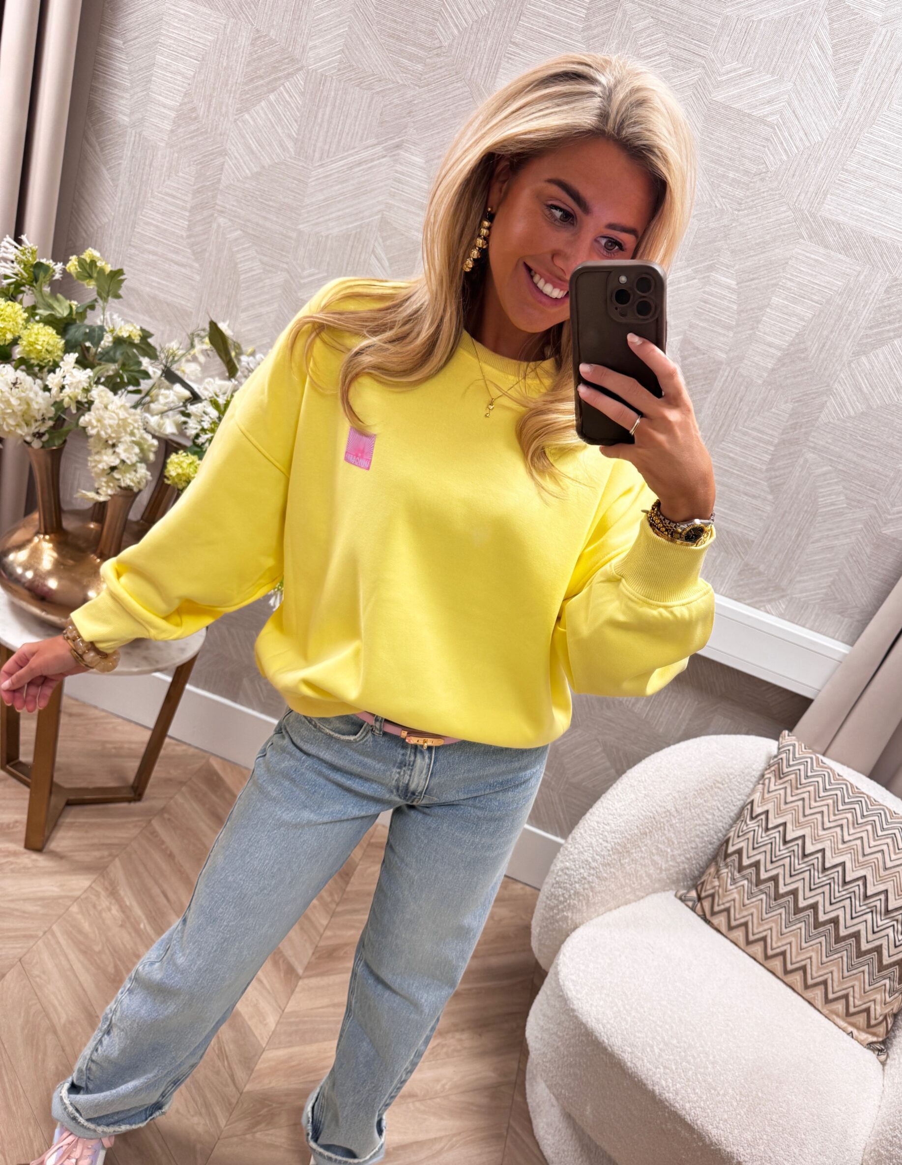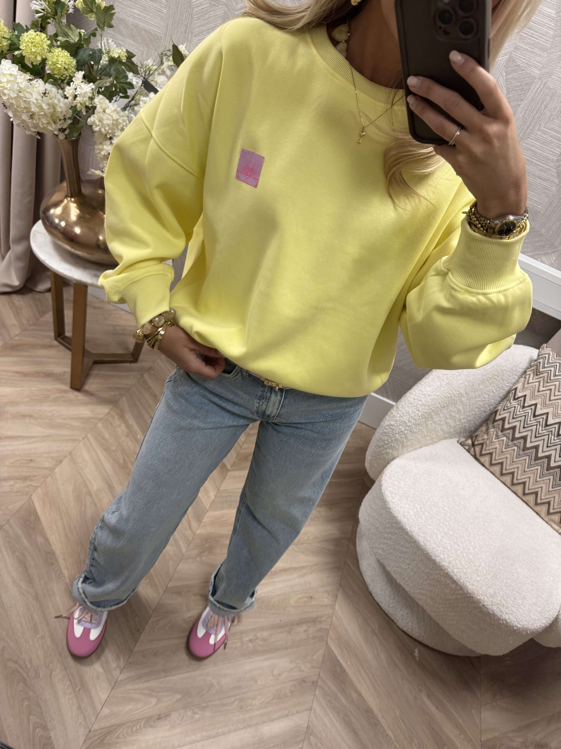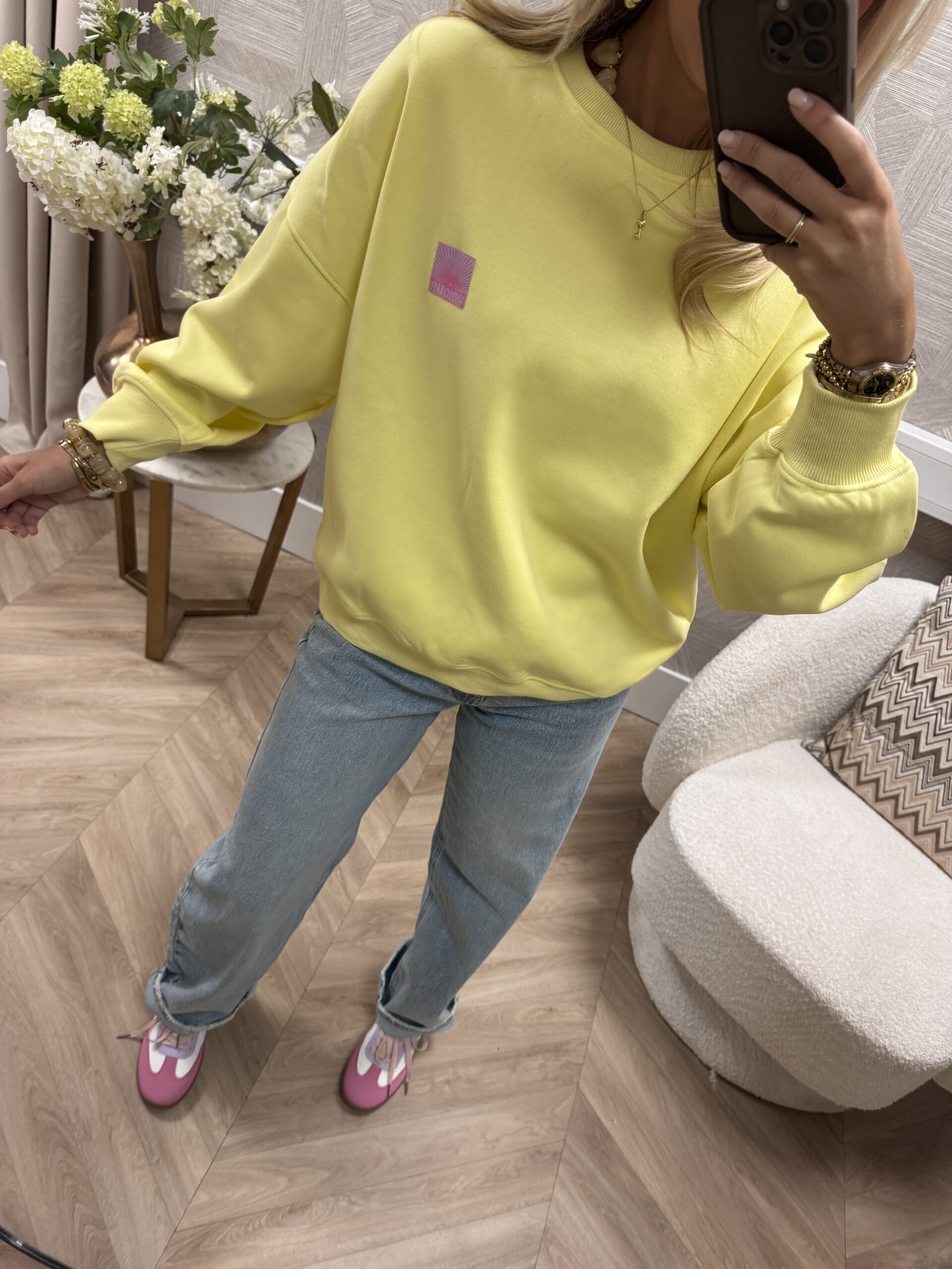 Deze gele sweater van Azzurro is gemaakt van een zachte, comfortabele stof en heeft een relaxed fit. De ronde hals en lange mouwen zorgen voor een casual uitstraling, terwijl het kleine labeldetail op de borst de sweater net dat extra’s geeft.