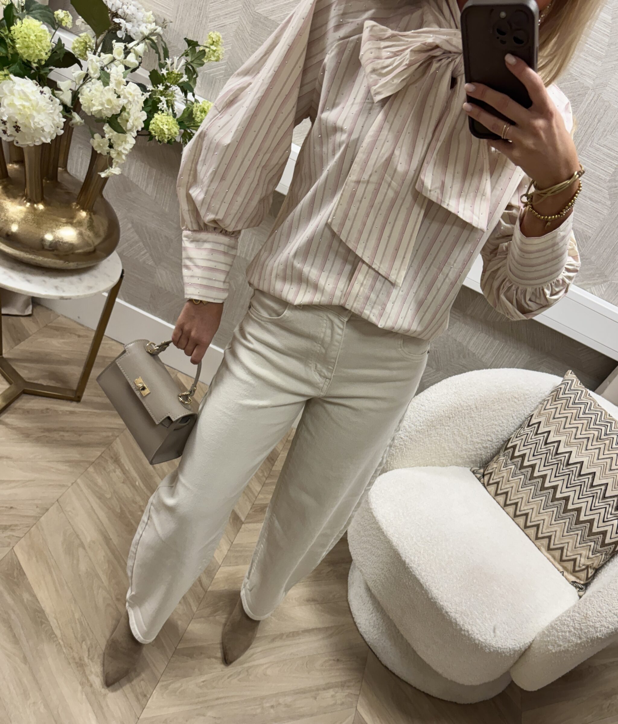Deze Crème denim is de perfecte mix tussen stoer en chic. De wijde pijpen geven een stoere uitstraling en vallen mooi lang langs het been. Dankzij de rustige kleur is dit een broek die je eindeloos kunt combineren.