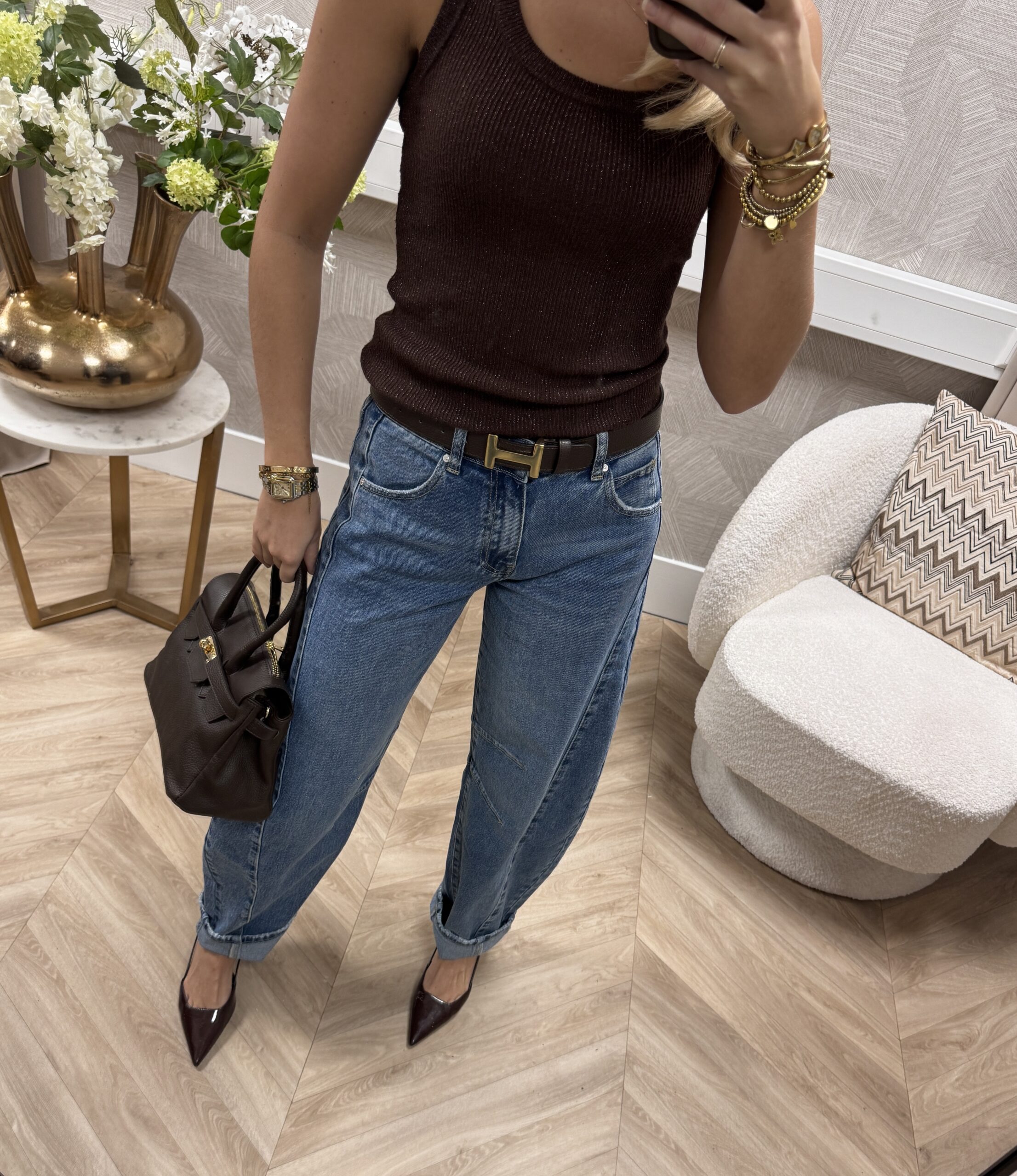 – Mid waist, valt iets op de heupen
