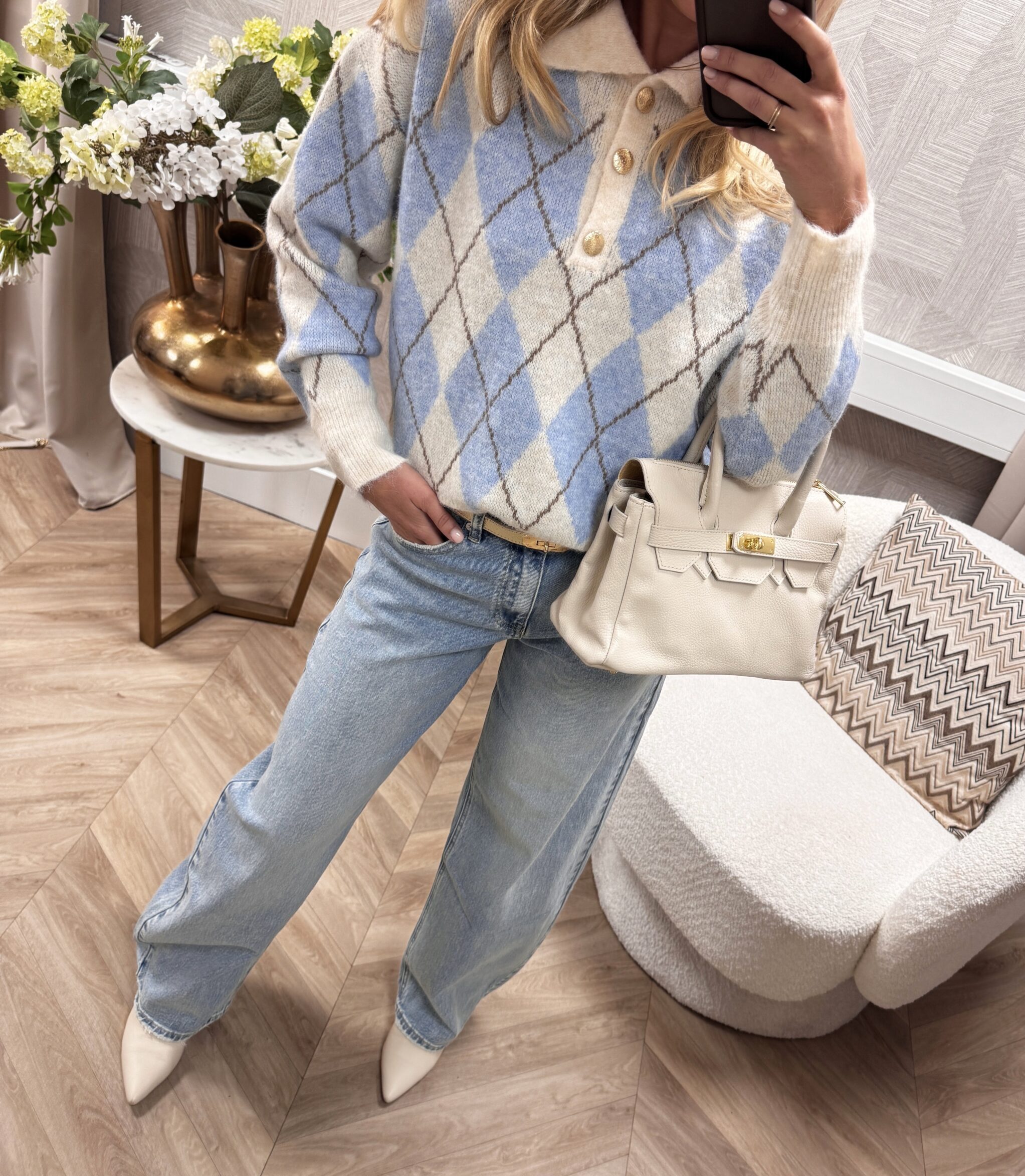 Argyle Knit Set Beige