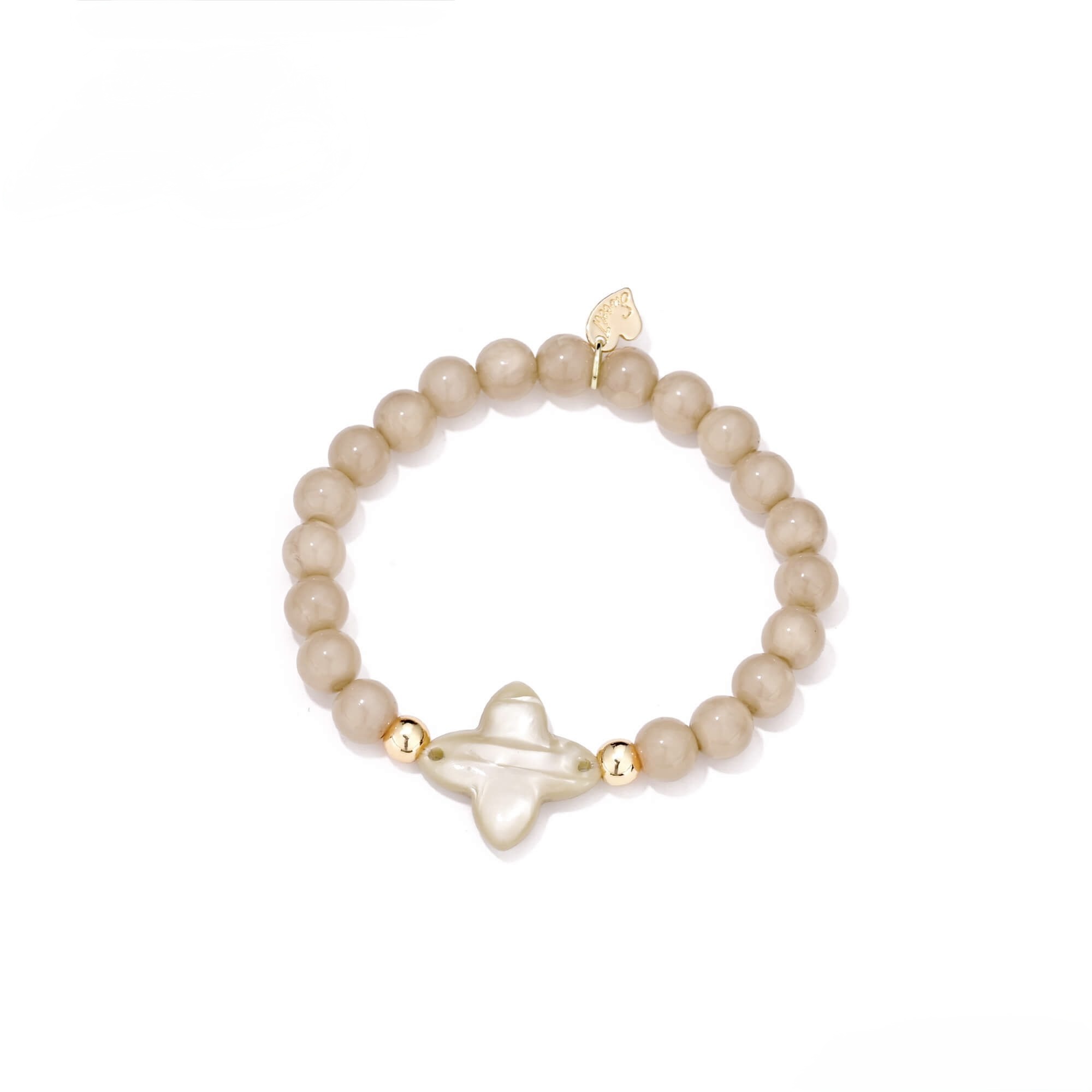 Fijne armband met beige kralen en een subtiel parel detail. Perfect voor een zachte en vrouwelijke touch bij elke outfit.