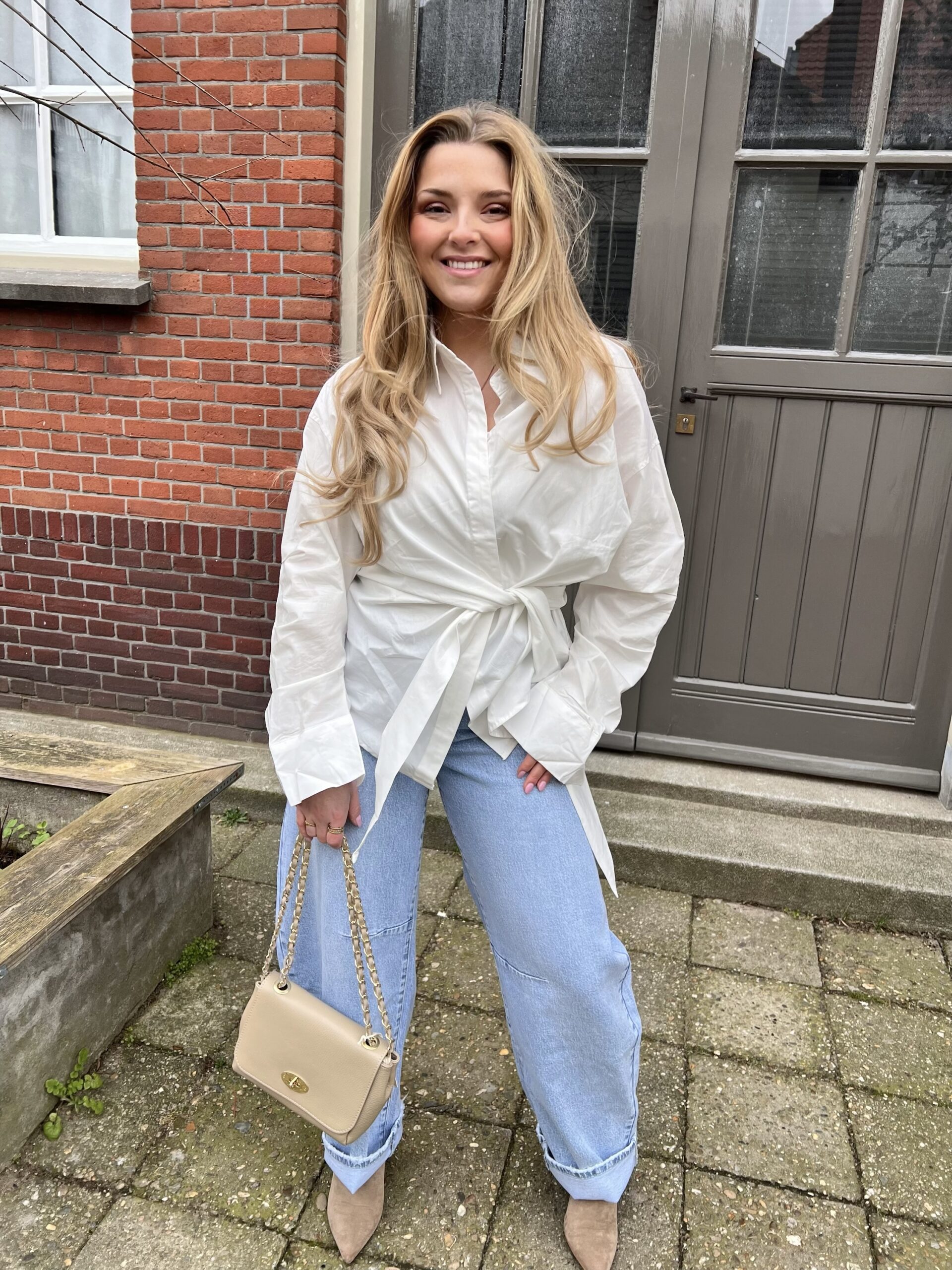 Deze blouse van katoenen stof heeft een strikdetail in de taille, waardoor je de blouse mooi kunt tailleren. Draag ’m casual met een jeans of juist chic met een pantalon.