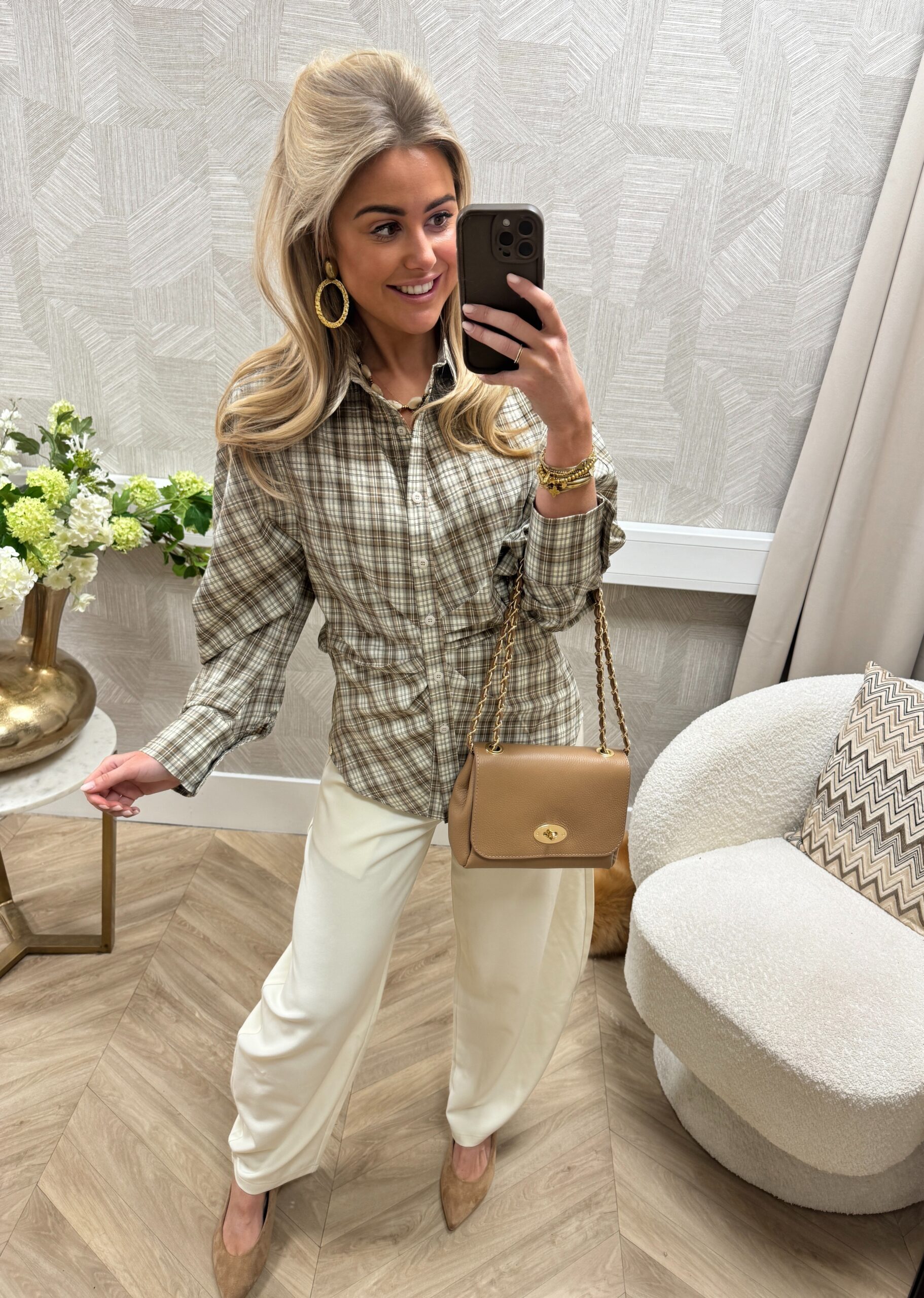 Deze trendy geruite blouse is dé perfecte mix van stoer en vrouwelijk ✨ De getailleerde fit met subtiele plooien en de speelse mouwen geven ‘m net dat beetje extra.