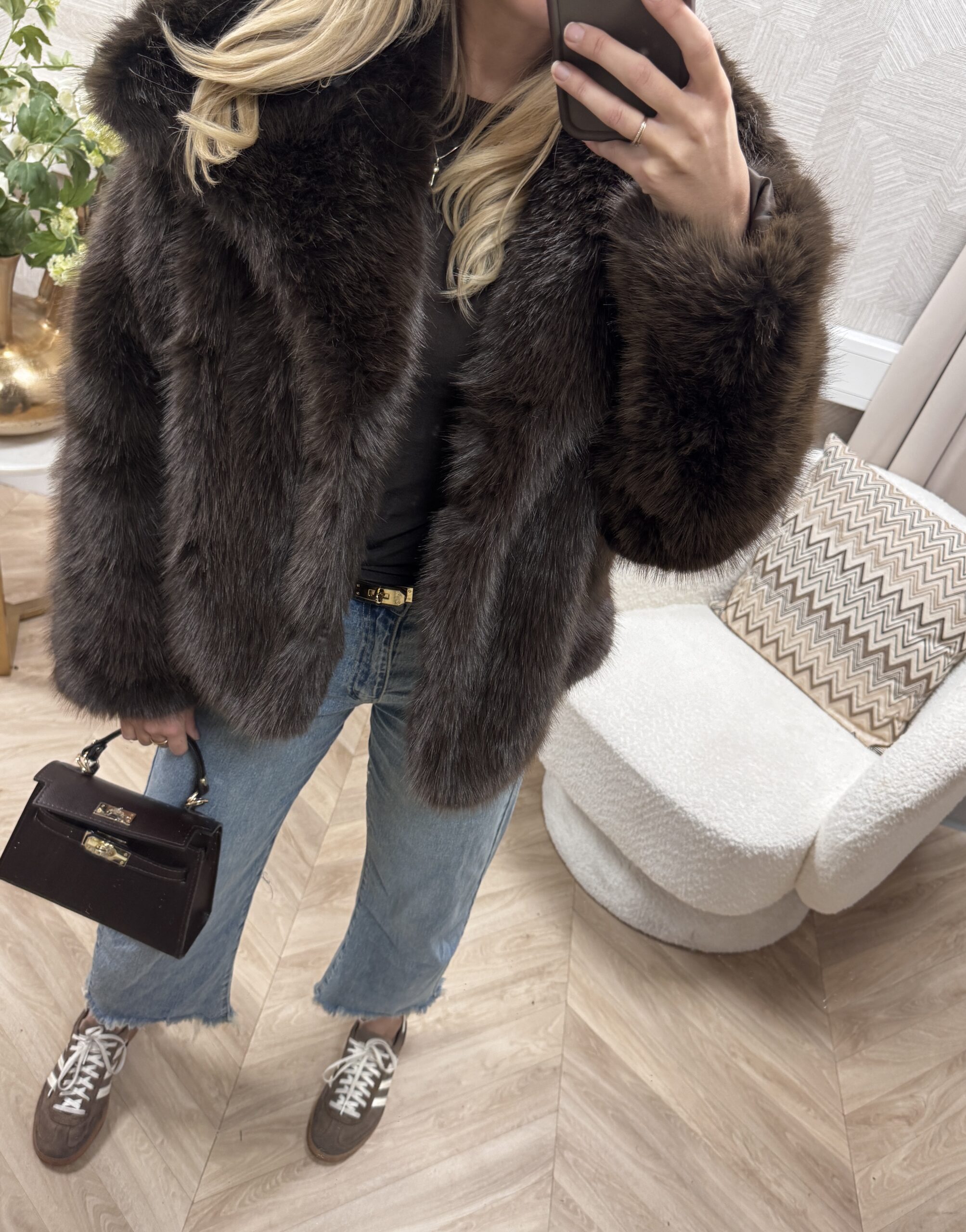 De bruine kleur geeft een chique, warme look die makkelijk combineert met jeans, jurken of leren broeken. De jas is gevoerd met een gladde binnenkant voor extra draagcomfort.