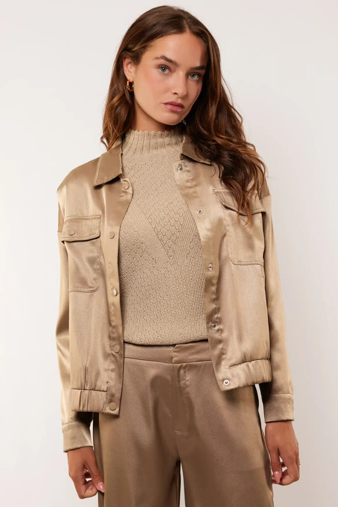 Hoe chic is dit satin blouse jacket van G-Maxx?! De zachte, glanzende stof geeft meteen een luxe uitstraling en voelt heerlijk soepel aan. Het model heeft een relaxte pasvorm, klassieke kraag en mooie doorknoopsluiting. De klepzakken voorop en de subtiele manchetten geven het jasje een stijlvolle, moderne look.