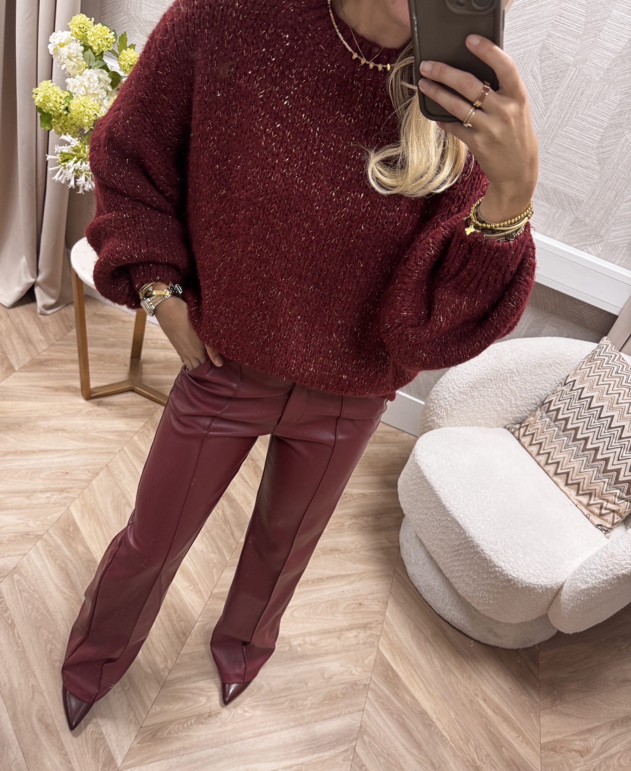 Zachte knit met een subtiele gouden glitterdraad voor een chique maar casual uitstraling. De ballonmouwen en relaxed fit maken ‘m extra comfy én stijlvol.