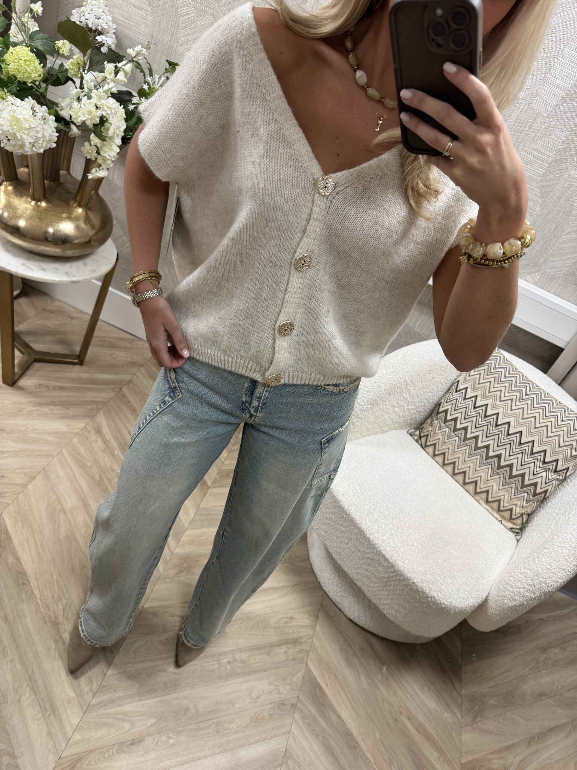 Een stijlvol gebreid gilet in een zachte beige kleur <3 Dit item is ideaal voor een casual chic look en perfect om te combineren met zowel een jeans als een nette pantalon.