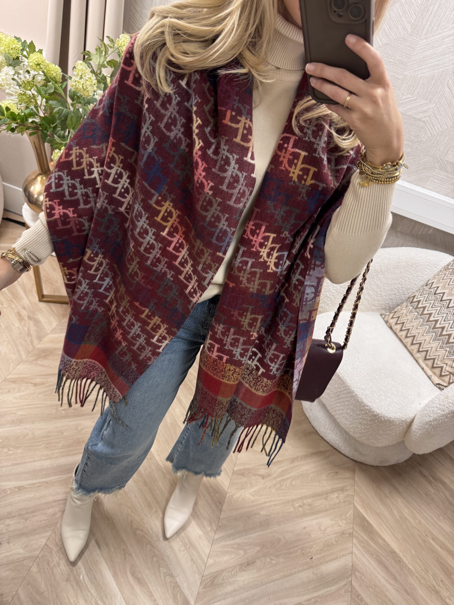 Een chique shawl met monogram look in warme herfstkleuren. Heerlijk zacht en groot genoeg om als sjaal of omslagdoek te dragen. Deze geeft elke outfit een luxe touch.