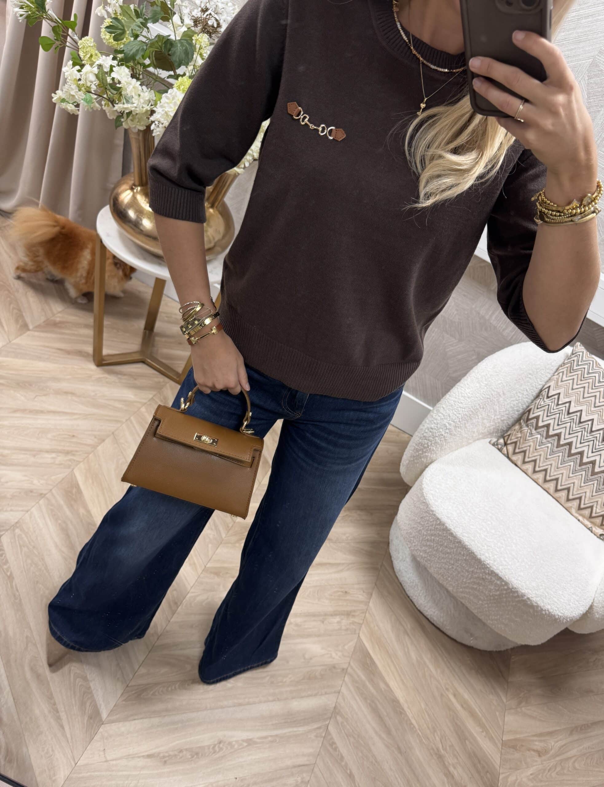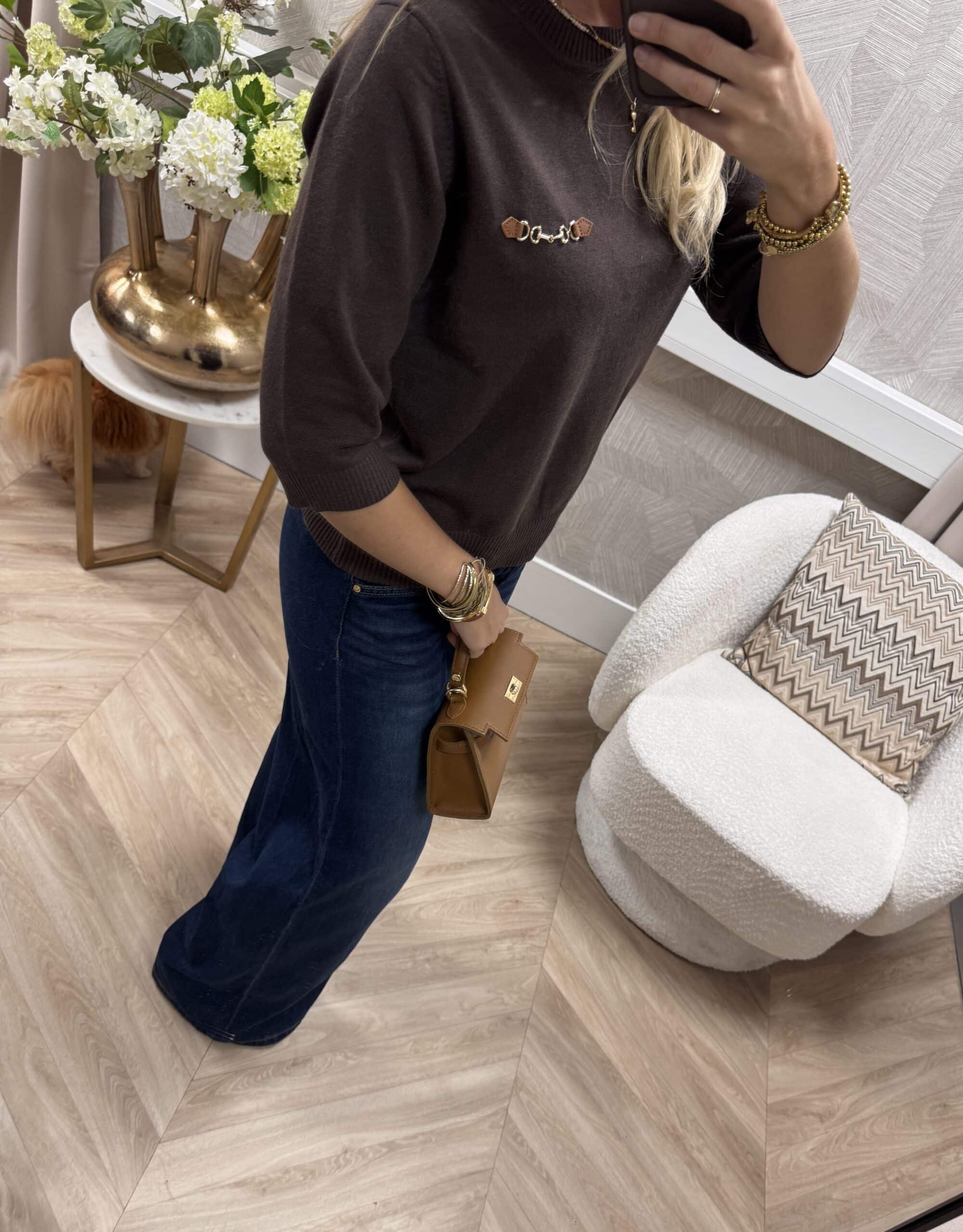Deze knit is een stijlvolle basic met een luxe touch. Het model heeft een rechte fit met halflange mouw en is afgewerkt met een subtiel inspired detail op de borst. Dankzij de zachte stof en tijdloze kleuren is dit truitje perfect voor zowel casual als chique combinaties. Verkrijgbaar in bruin en camel.