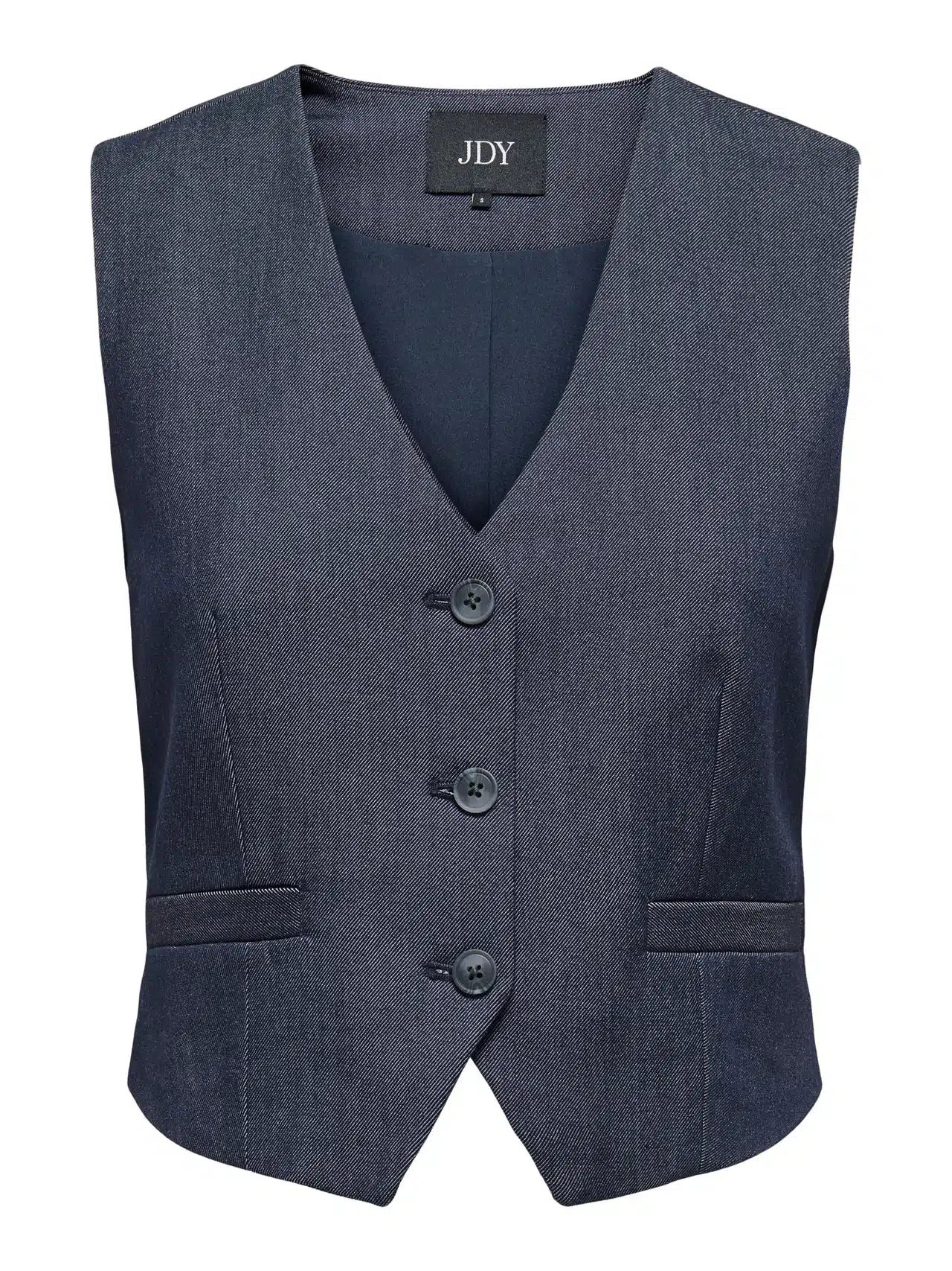 Dit JDY gilet is een echte trend dit seizoen! Het model heeft een V-hals, knoopsluiting en een licht getailleerde pasvorm die prachtig combineert met zowel de bijpassende pantalon en blazer als los op een jeans of rok. De denim-look stof maakt het item stoer én stijlvol tegelijk.