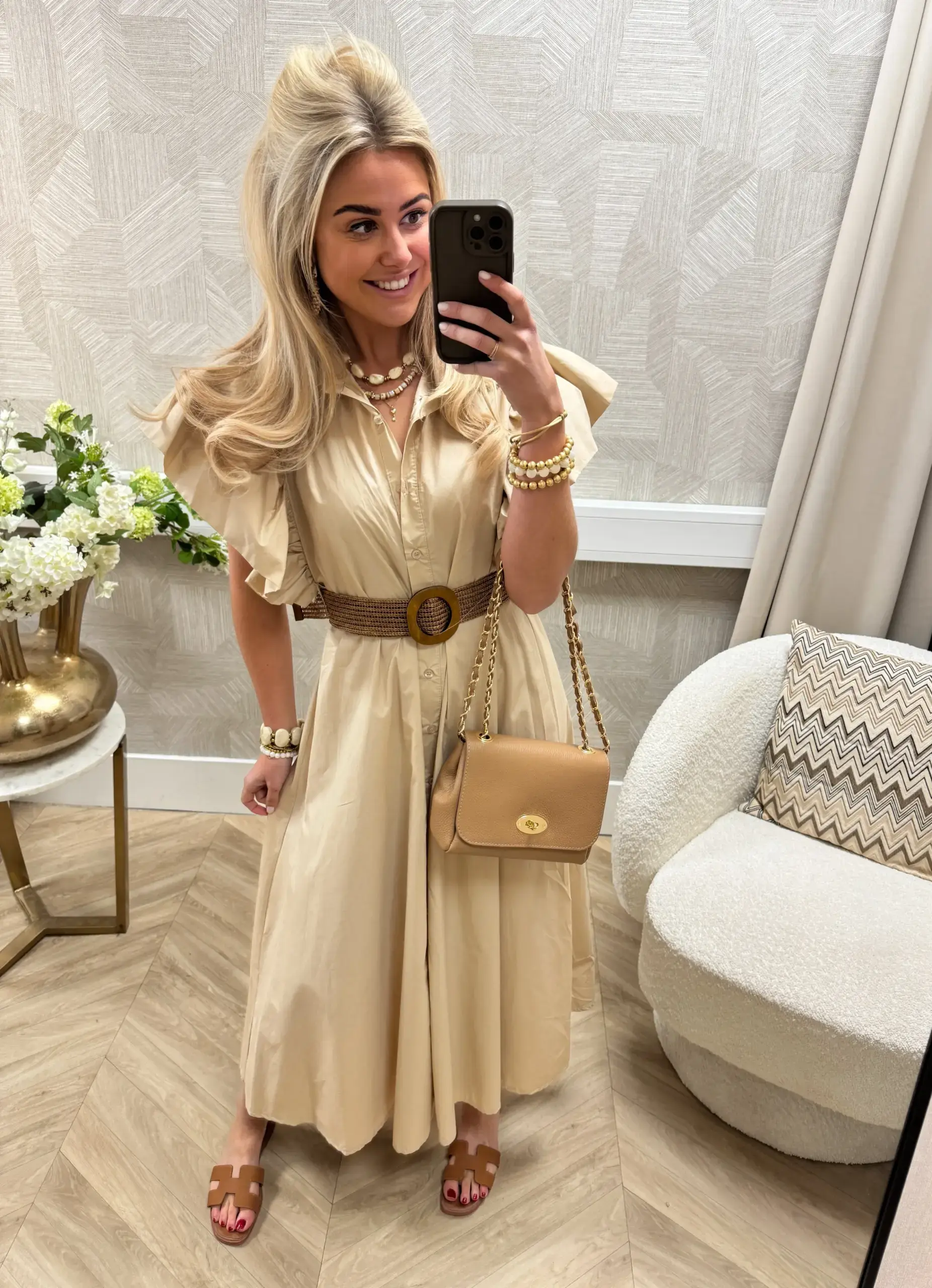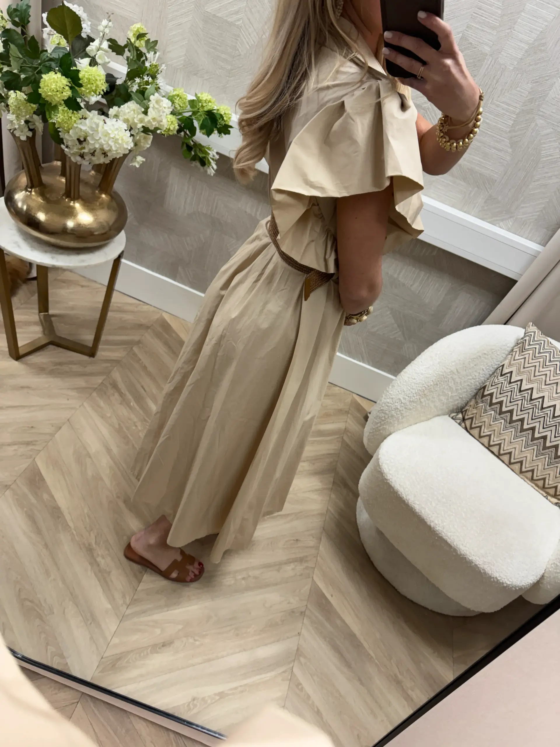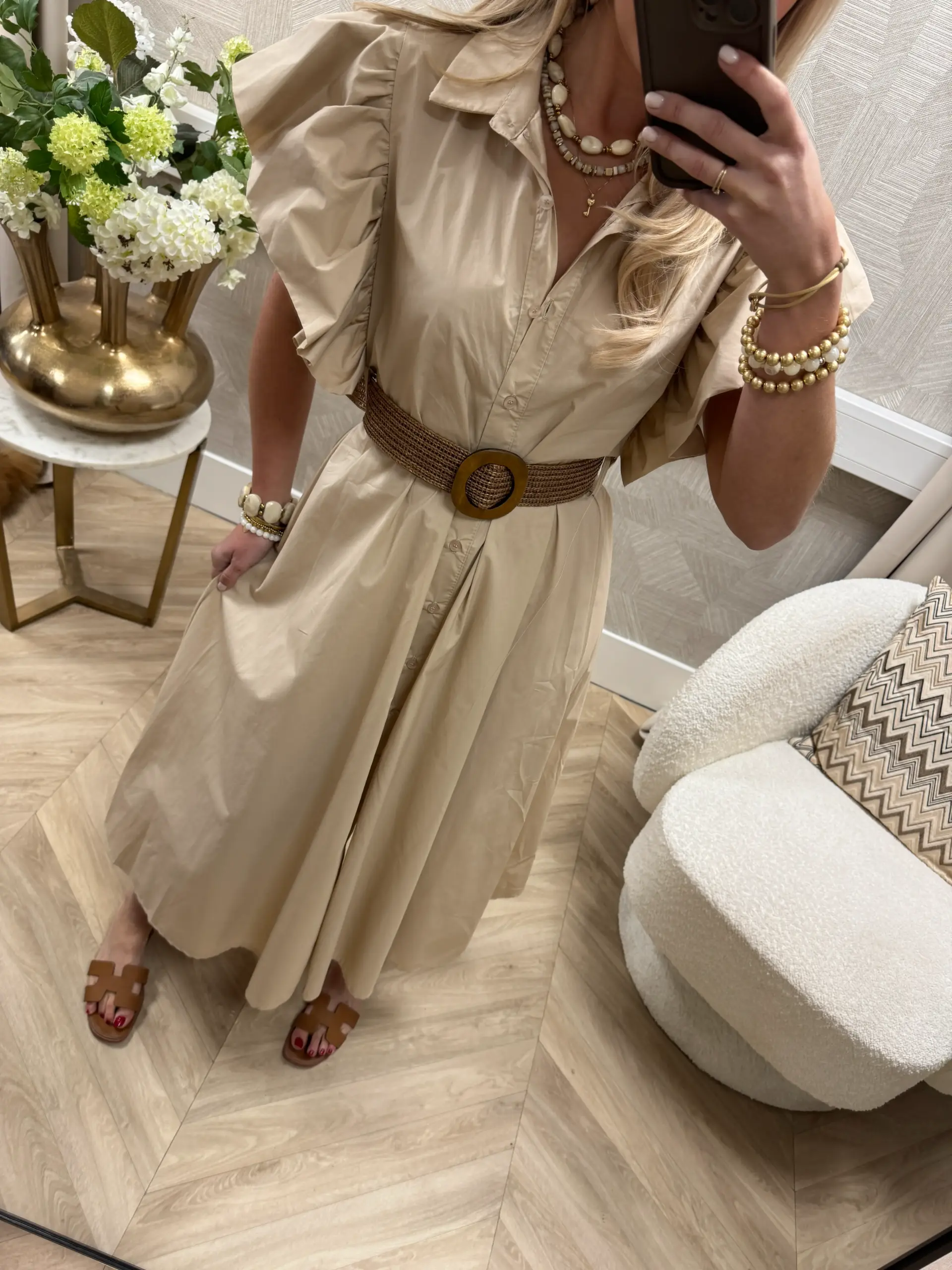 Deze stijlvolle blousejurk is een echte musthave voor een vrouwelijke en classy look 🤍 De speelse pofmouwen met ruffle detail geven de jurk nét dat beetje extra, en met de bijpassende riem accentueer je moeiteloos je taille voor een mooi silhouet.