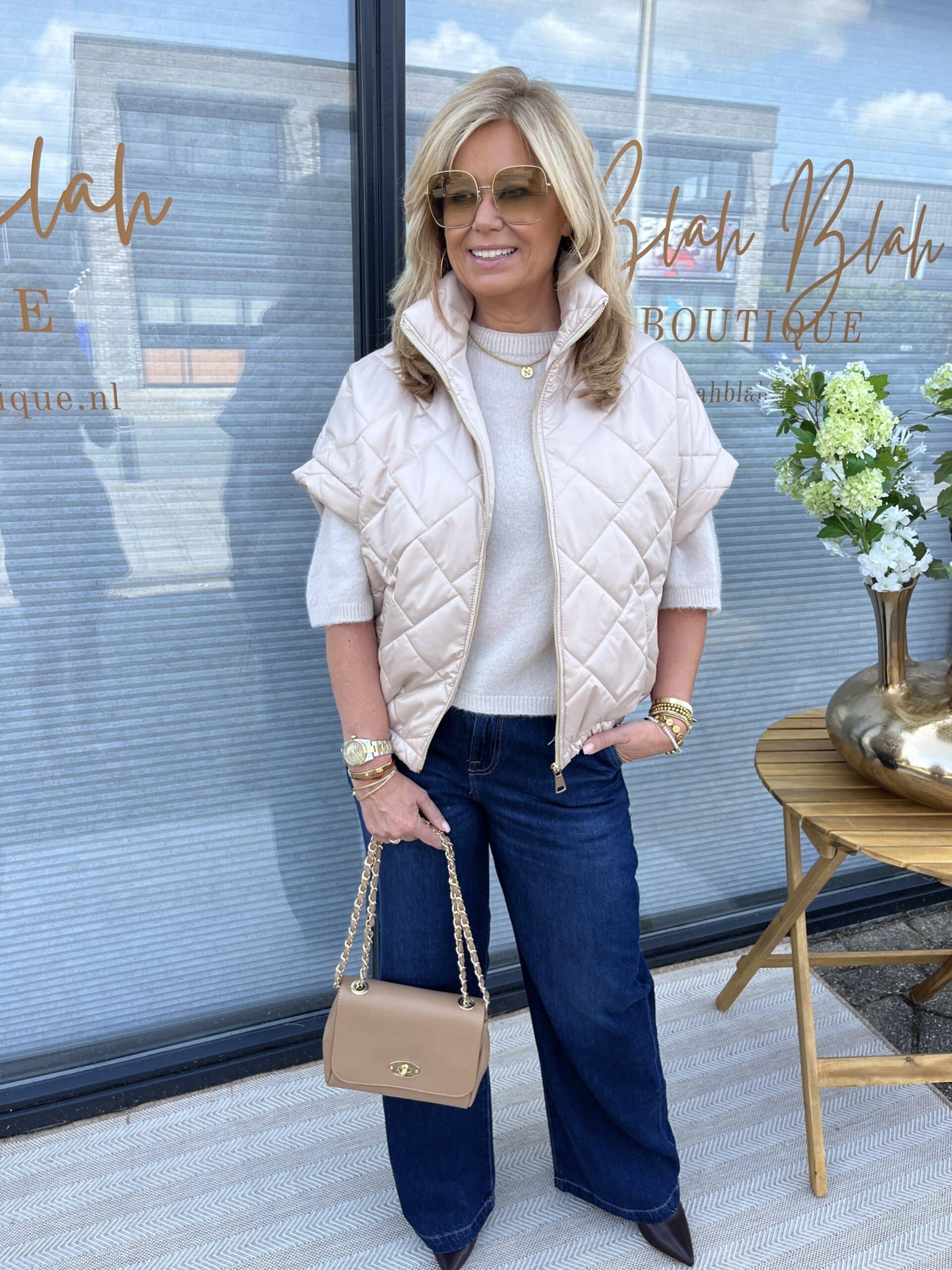 – Licht gewatteerde bodywarmer met subtiele metallic glans