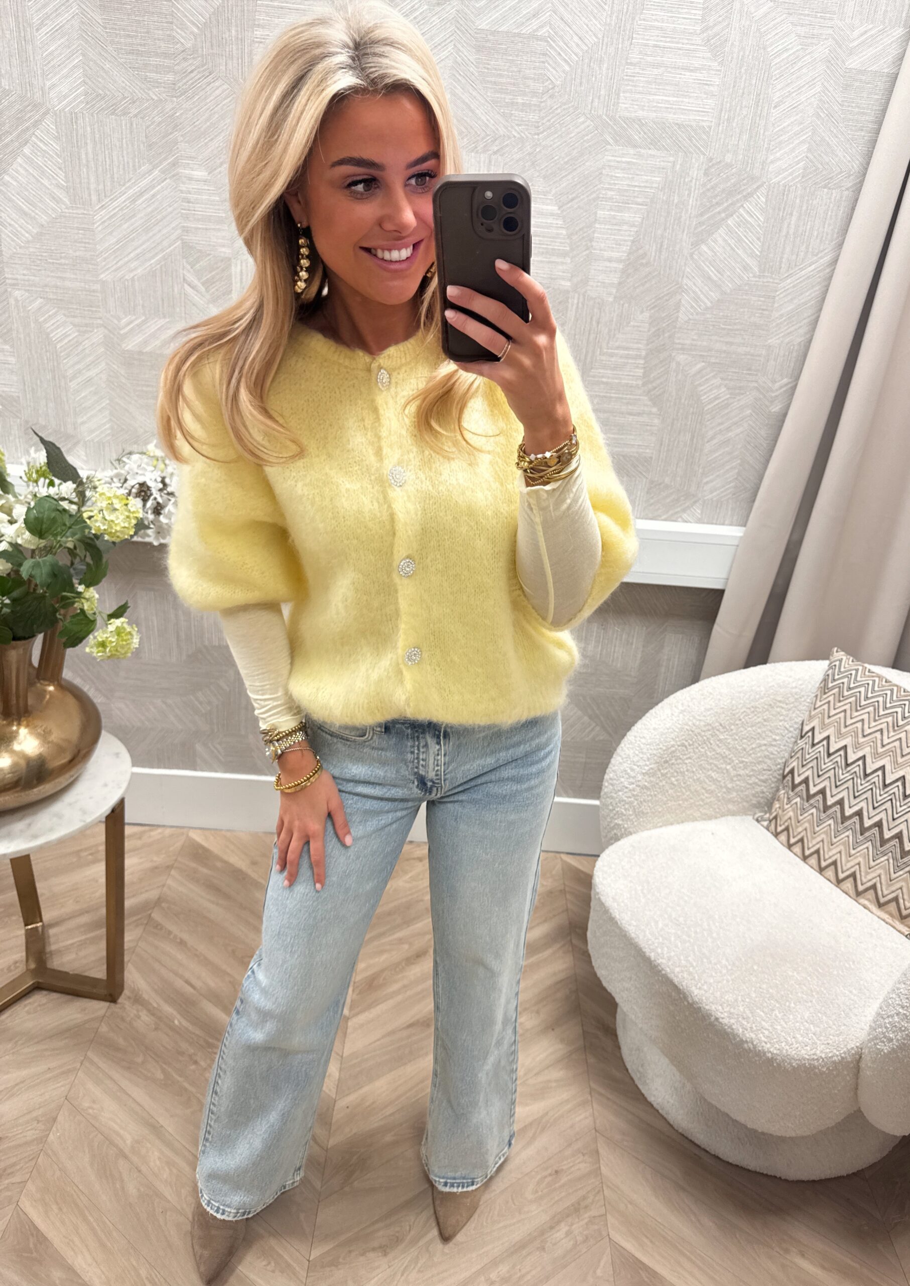 Mohair Vest Strass Geel