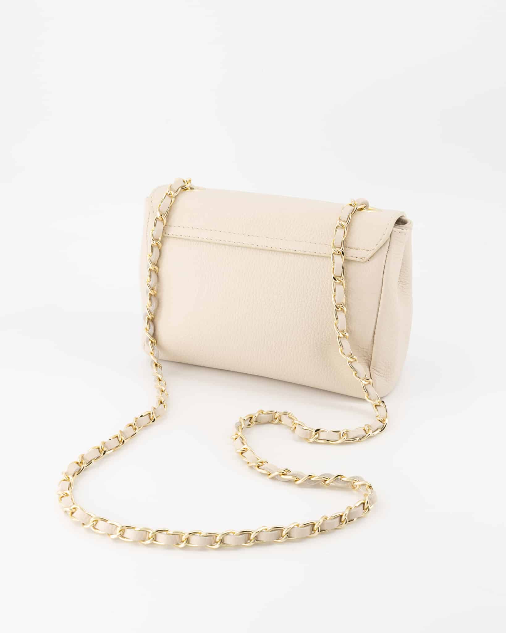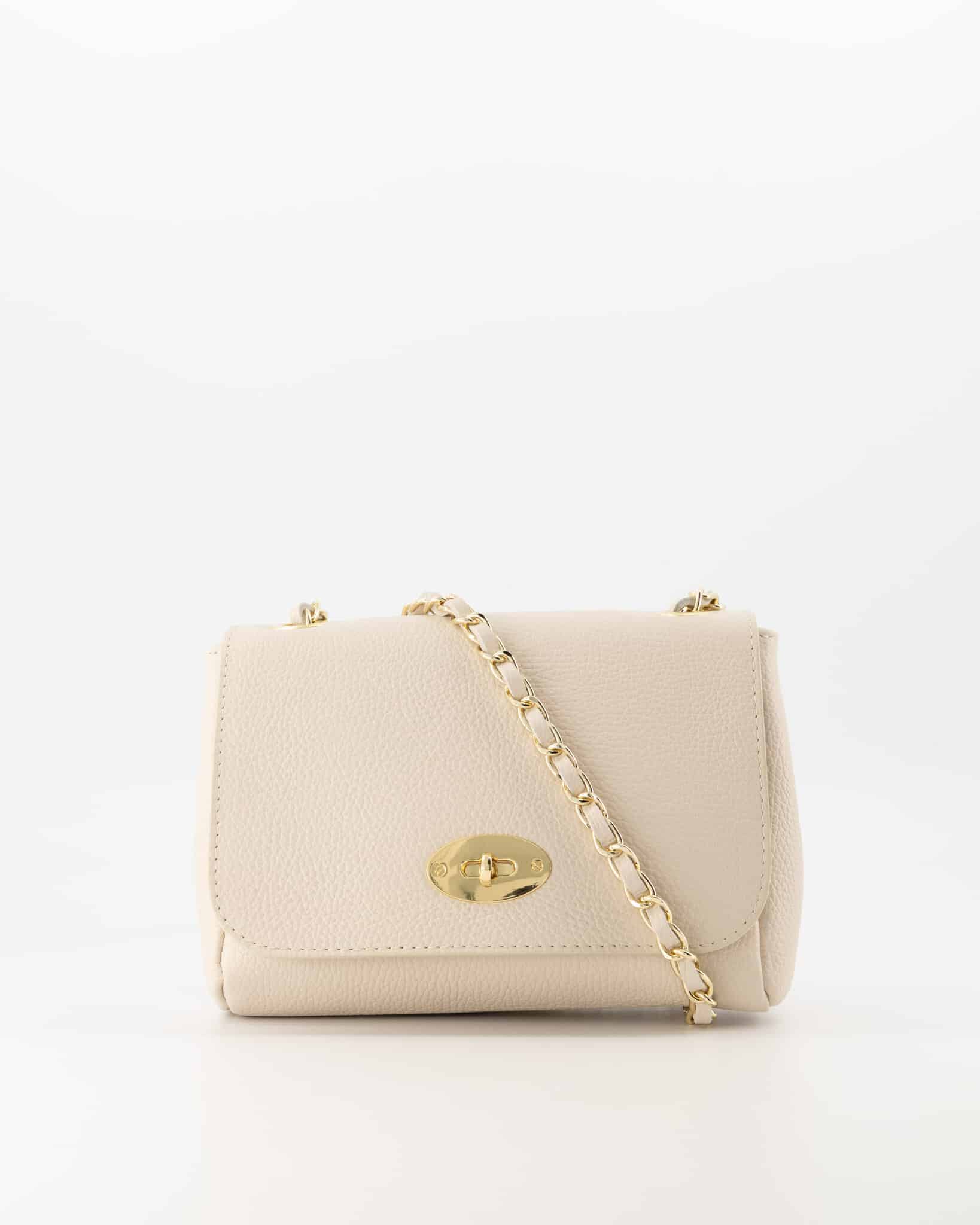De elegante Nina crossbody tas is een stijlvol item. Deze prachtige tas is vervaardigd van hoogwaardig leer en is voorzien van een uniek draaisluiting slotje dat niet alleen functioneel is, maar ook een vleugje glamour toevoegt aan de tas. Het kettinghengsel van de tas is subtiel en verfijnd, met leer erdoorheen gevlochten voor een luxe uitstraling. De Nina tas biedt voldoende ruimte in het hoofdvak voor alle essentiële items, terwijl het handige ritsvakje aan de binnenzijde zorgt voor extra organisatie.
