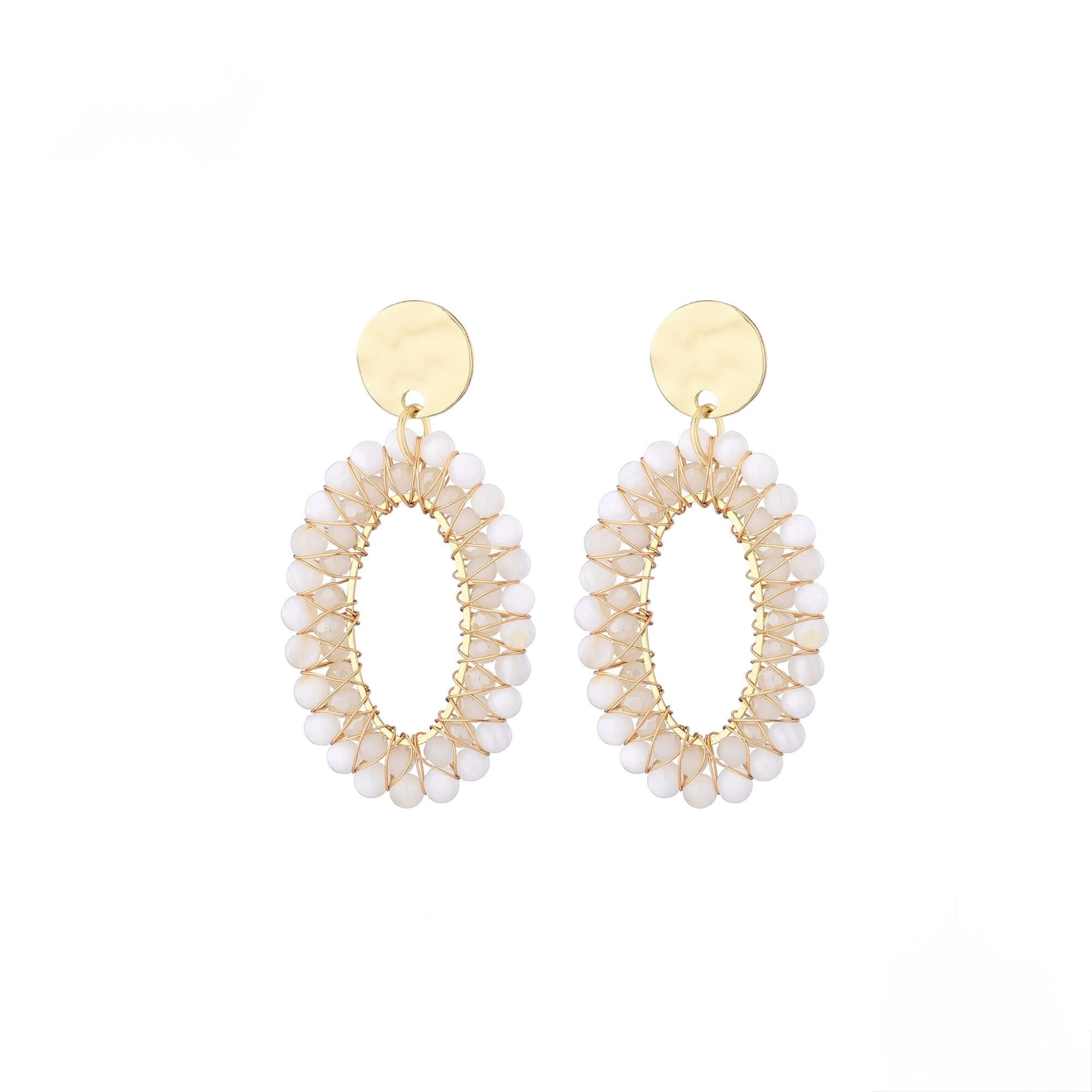Stijlvolle oorbellen met een open ovale vorm en verfijnde beige kralen voor een elegante en zomerse uitstraling. Deze eyecatchers geven je outfit een zachte, luxe touch en zijn perfect voor zowel dagelijks als een avondje uit.