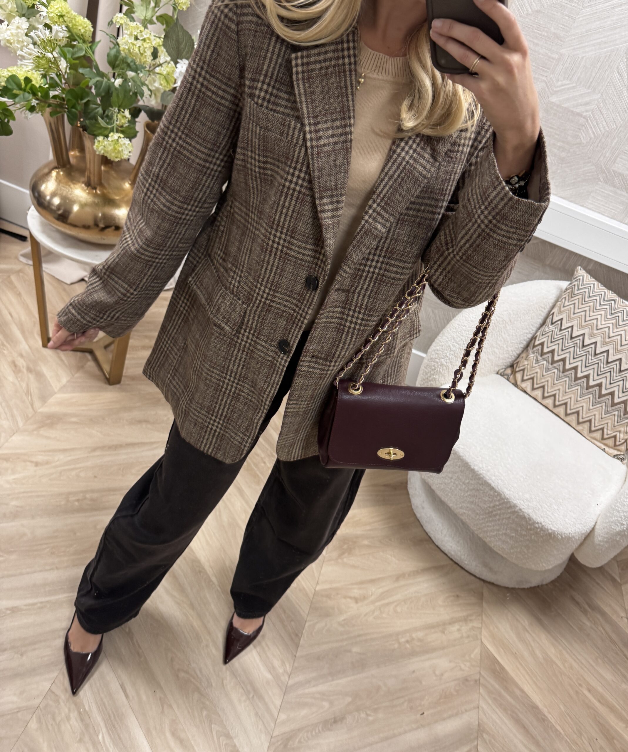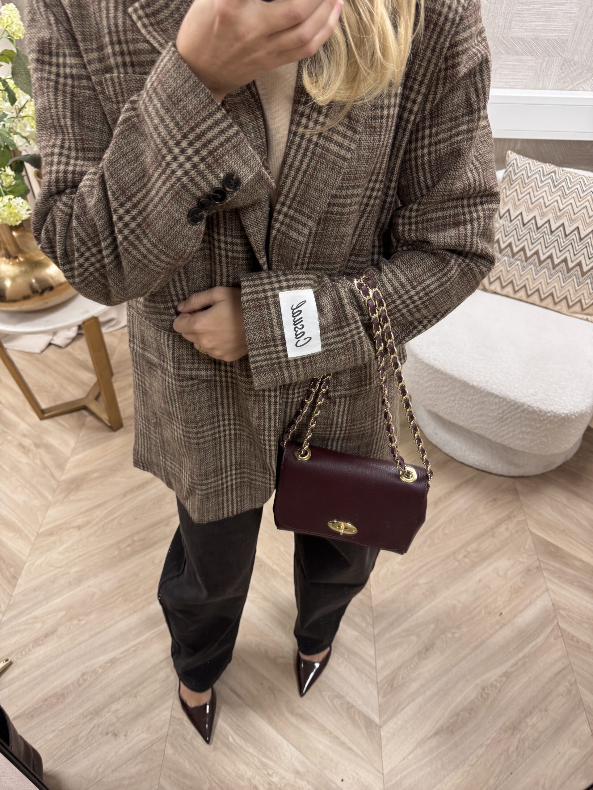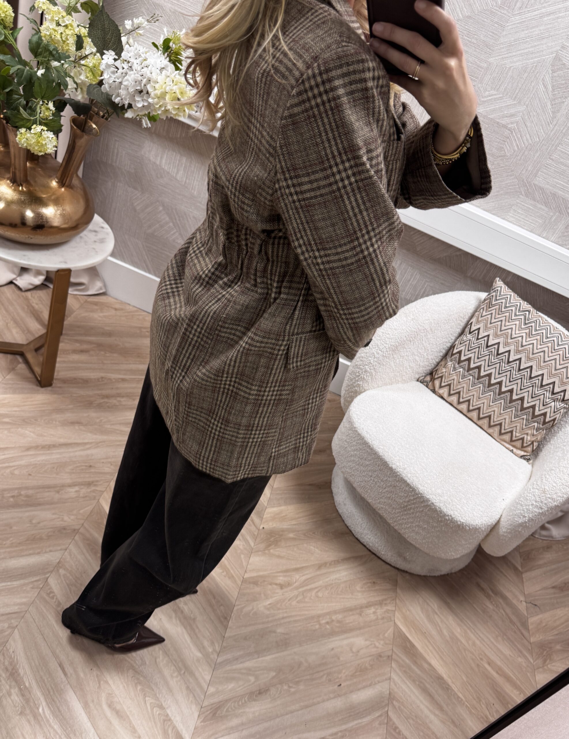 Deze geruite blazer heeft een tijdloze, classy uitstraling met een moderne oversized fit. De bruine tinten combineren makkelijk met zowel jeans als leer. Een stijlvol laagje voor elke dag.