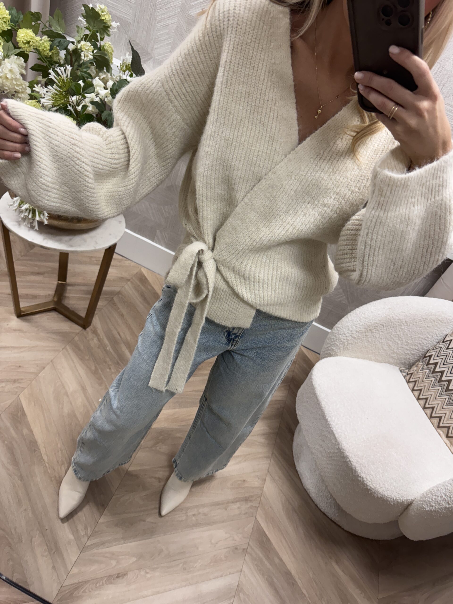 Dit overslag vest is een en comfortabele toevoeging aan je garderobe. Het vestje is grofgebreid en voelt heerlijk zacht aan. Dankzij het overslagmodel met strikceintuur creëer je eenvoudig een flatterende fit.