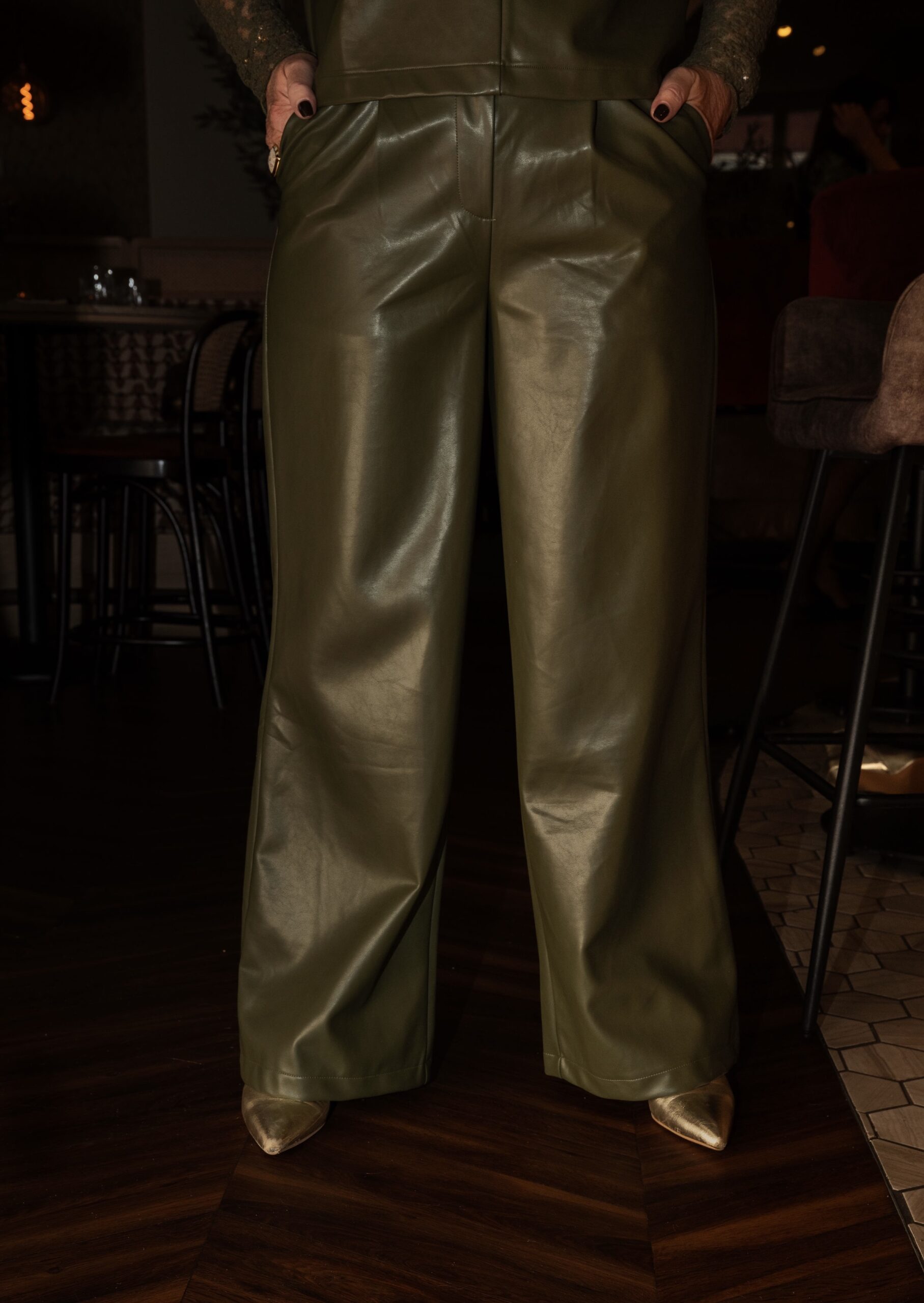 Het model heeft een rechte, wijde pijp en een hoge taille voor een flatterende fit. De soepelvallende leatherlook valt prachtig en draagt heerlijk comfortabel.