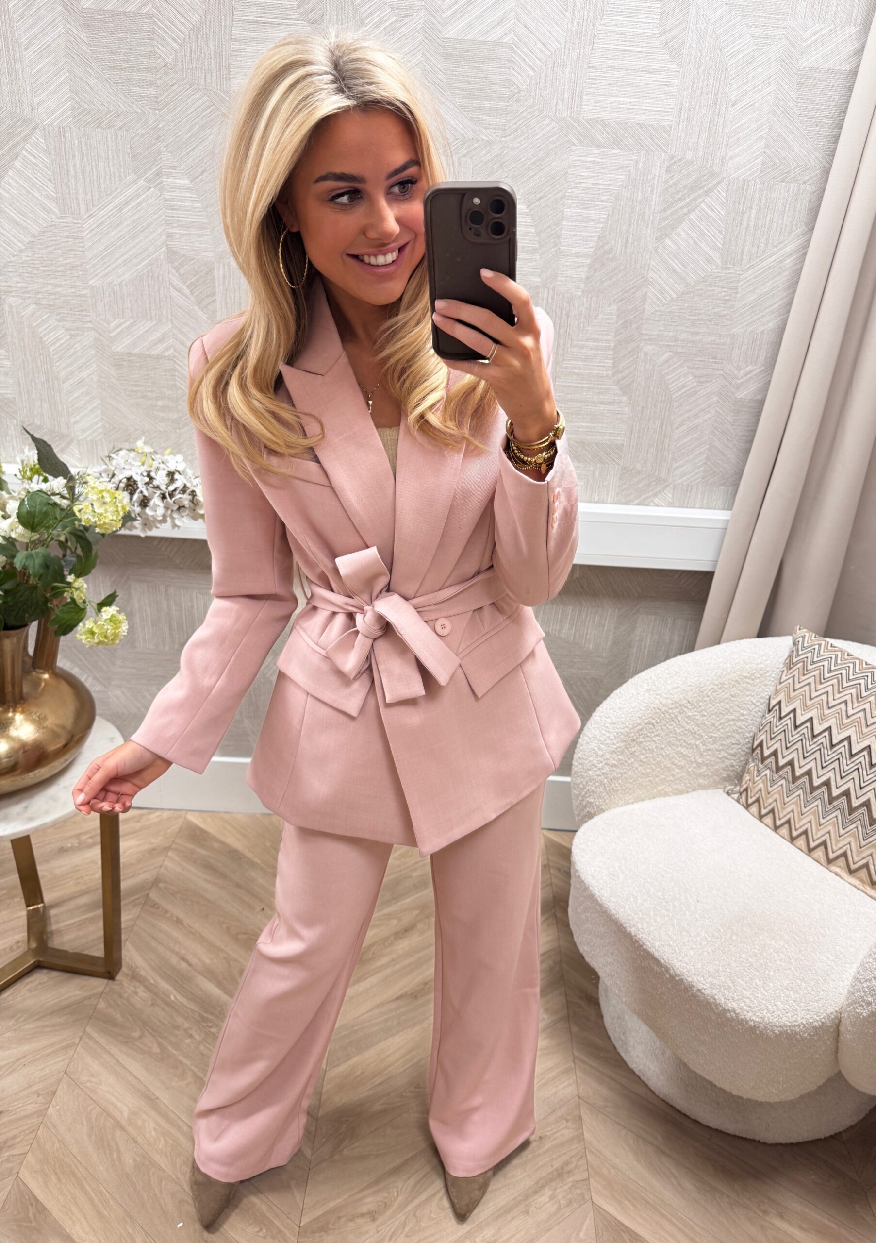 Prachtige pantalon met high waist fit en rechte, wijde pijpen die zorgen voor een flatterende pasvorm. De zachte soft pink kleur maakt deze pantalon perfect voor het voorjaar. Dankzij de elastische tailleband aan de achterkant zit de broek ook nog eens heerlijk comfortabel.