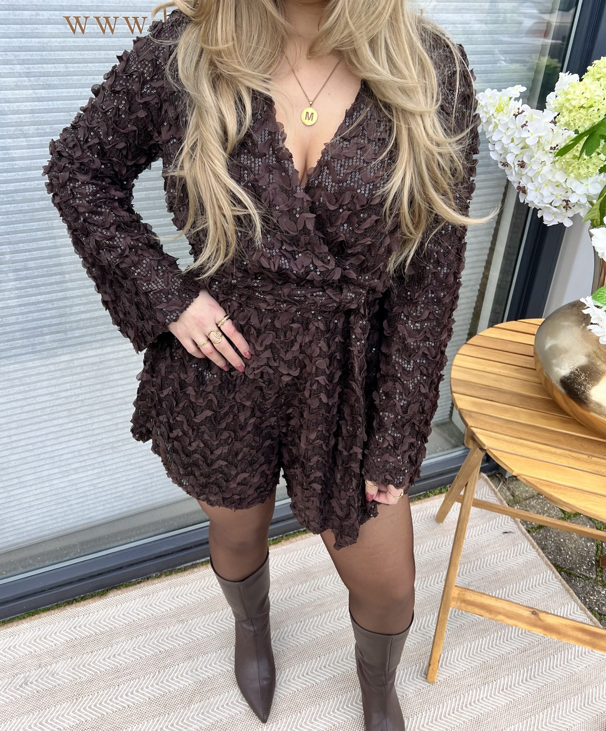 De stof heeft all-over pailletten. De overslag V-hals maakt ’m supervrouwelijk en de aangesloten taille zorgt voor een mooie shape. Het model heeft wijdere mouwen en een speels, chic broekje – perfect voor kerst, oud & nieuw of elk feestje waar je wil stralen!