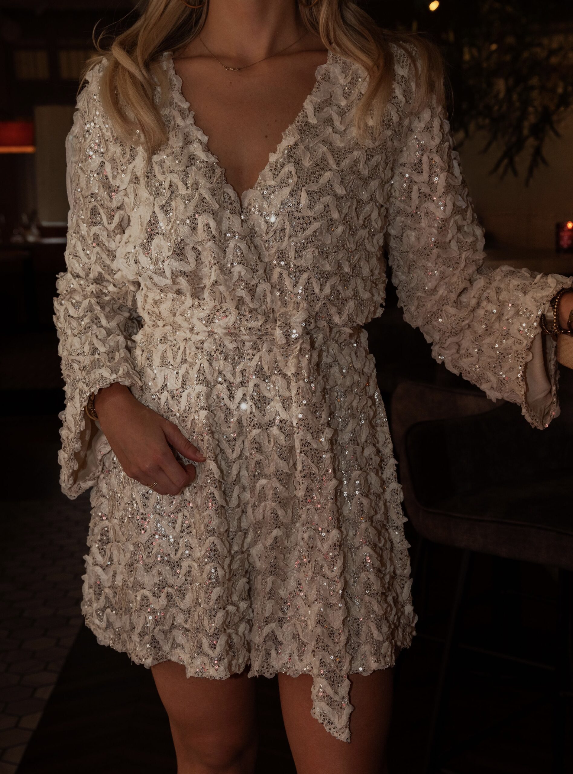 De stof heeft all-over pailletten. De overslag V-hals maakt ’m supervrouwelijk en de aangesloten taille zorgt voor een mooie shape. Het model heeft wijdere mouwen en een speels, chic broekje – perfect voor kerst, oud & nieuw of elk feestje waar je wil stralen!