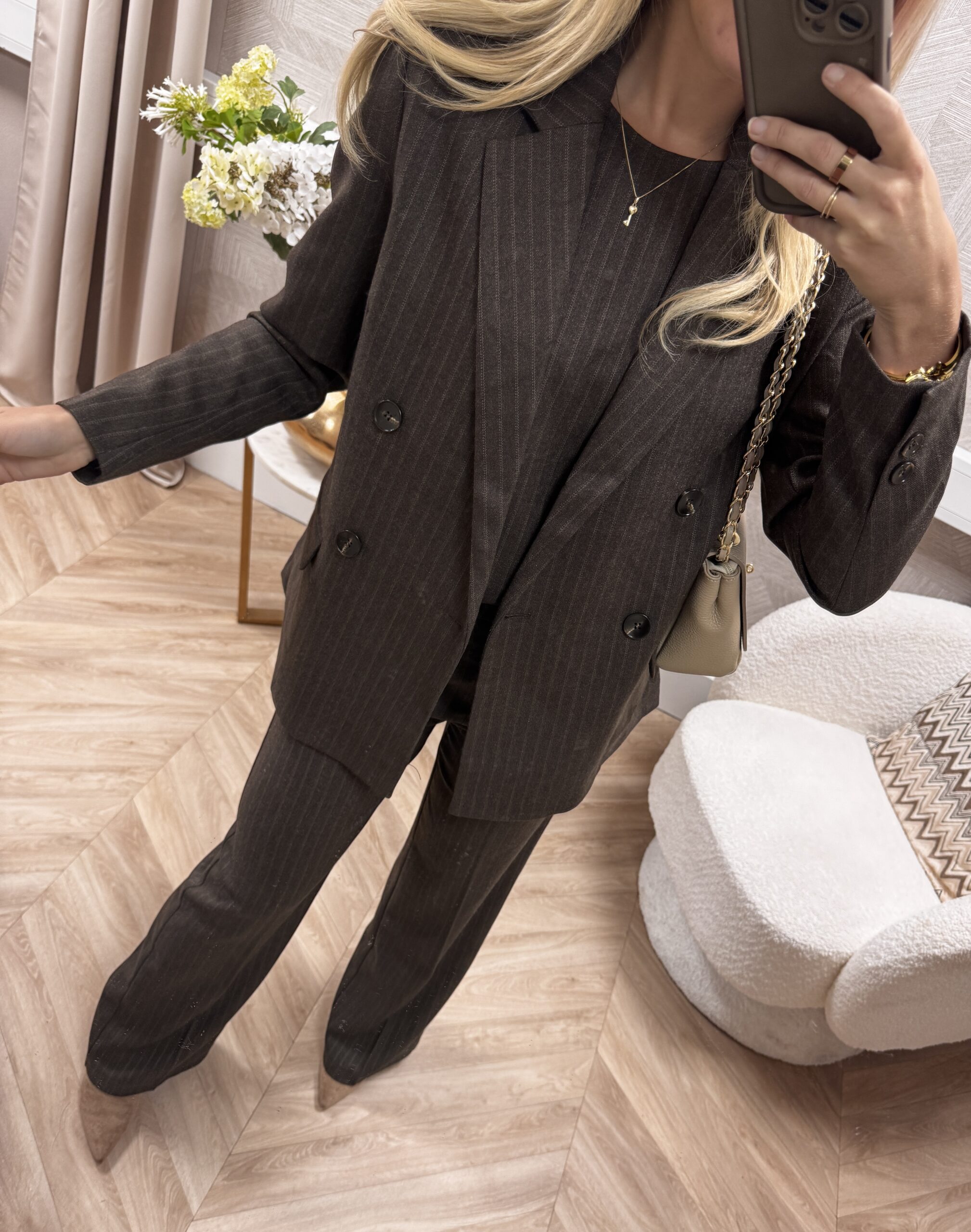Deze pinstripe blazer geeft elke look een stijlvolle touch.