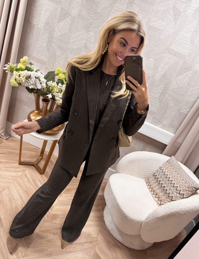 – Combineer als pak met de Pinstripe Suit Broek Bruin