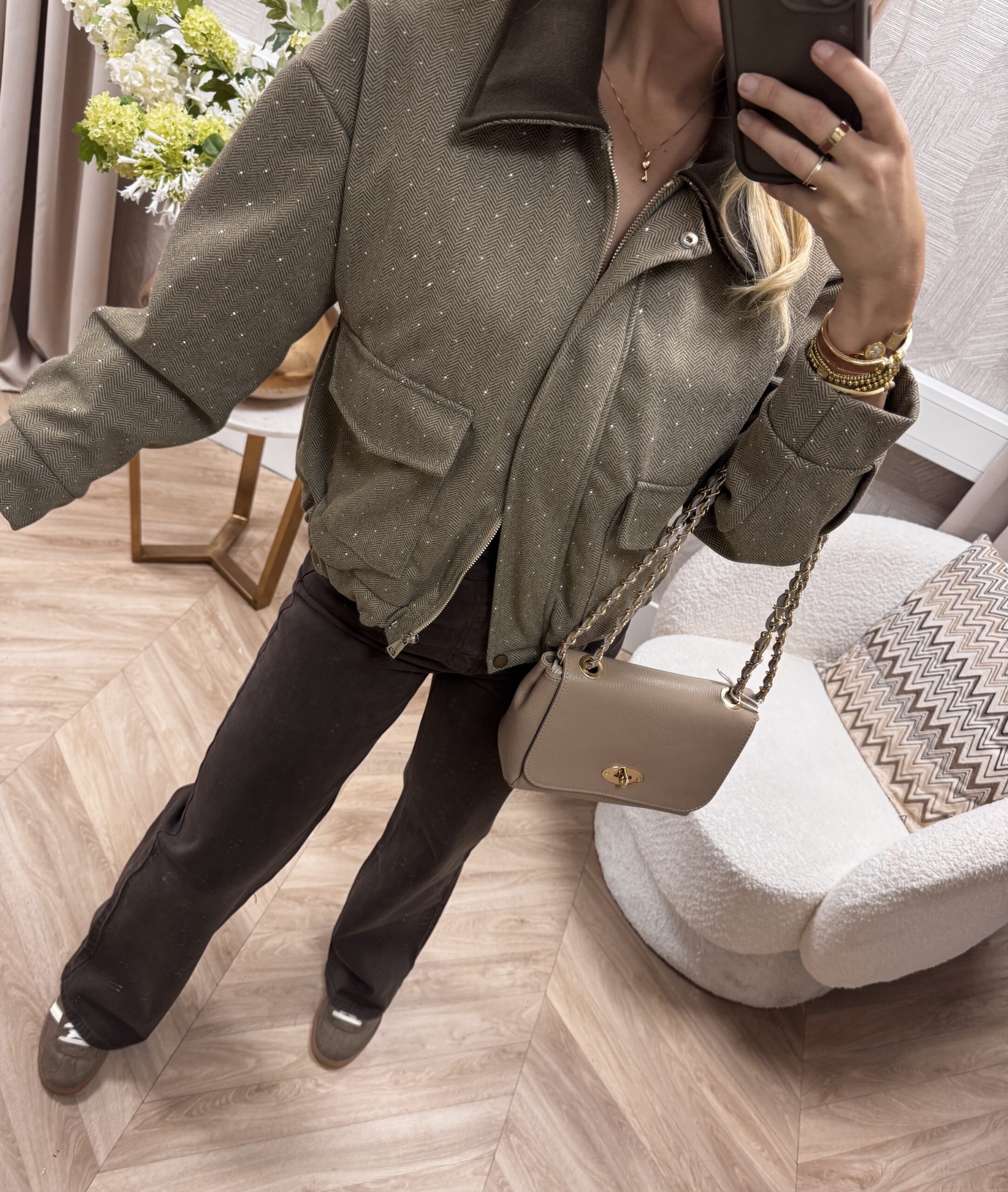 Een stoer bombermodel met een subtiele sparkle in de stof, perfect om elke look een stijlvolle touch te geven. De relaxte fit en zachte binnenzijde maken hem supercomfortabel.