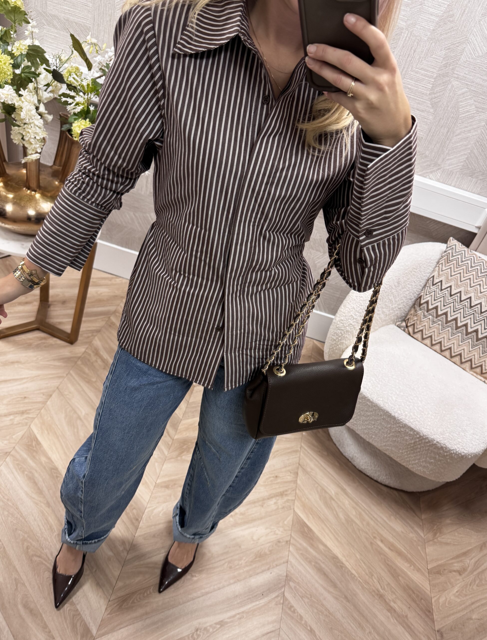 Een stijlvolle blouse met verticale strepen en een elegante, vrouwelijke pasvorm.