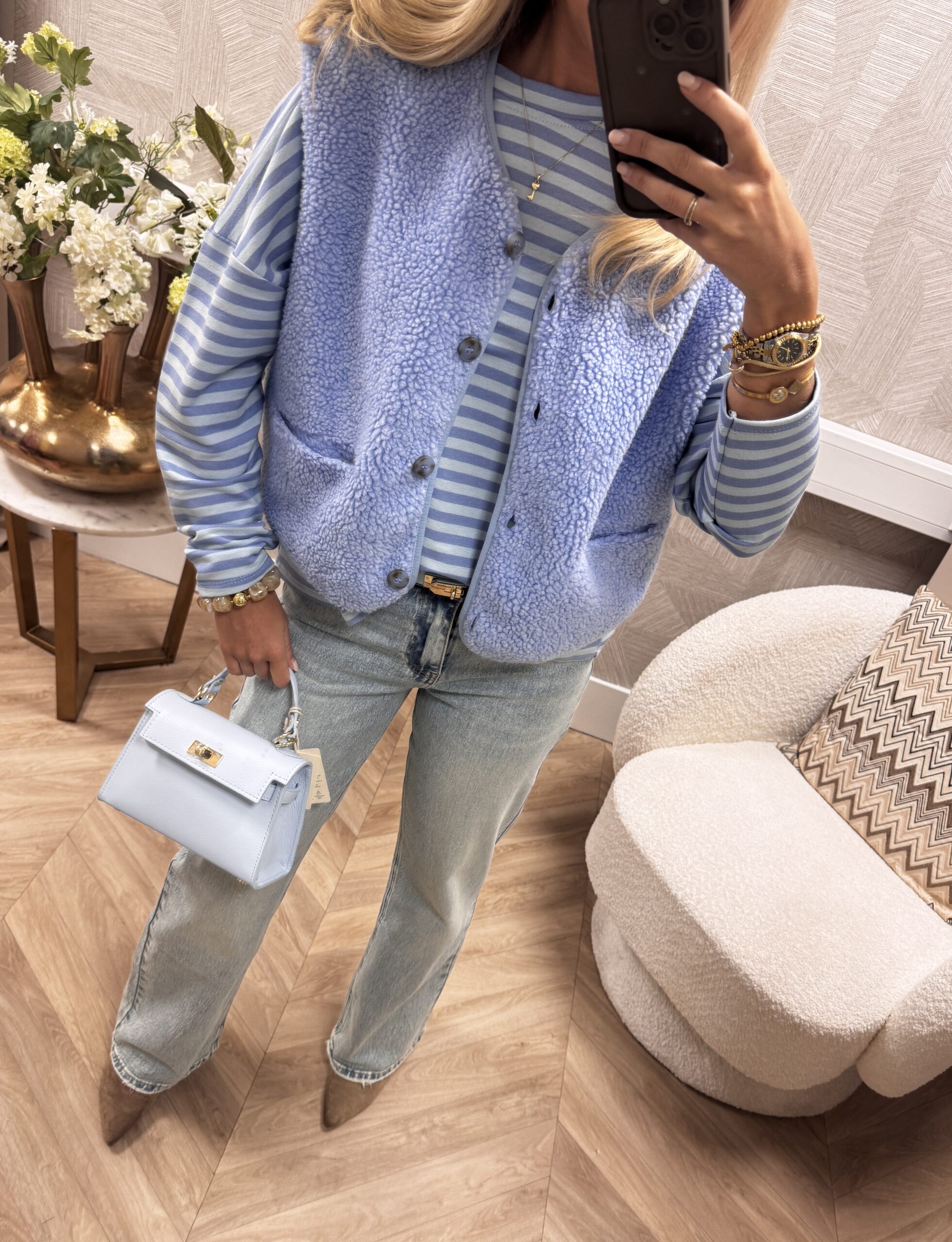 WEBSHOP ONLY. Dit teddy gilet is dé perfecte finishing touch voor je outfit. Het model heeft een zachte teddy structuur en een tijdloze, mouwloze pasvorm. Draag ‘m over een longsleeve, blouse of knit voor extra warmte én een trendy laagje. Ideaal voor het tussenseizoen en supermakkelijk te combineren.