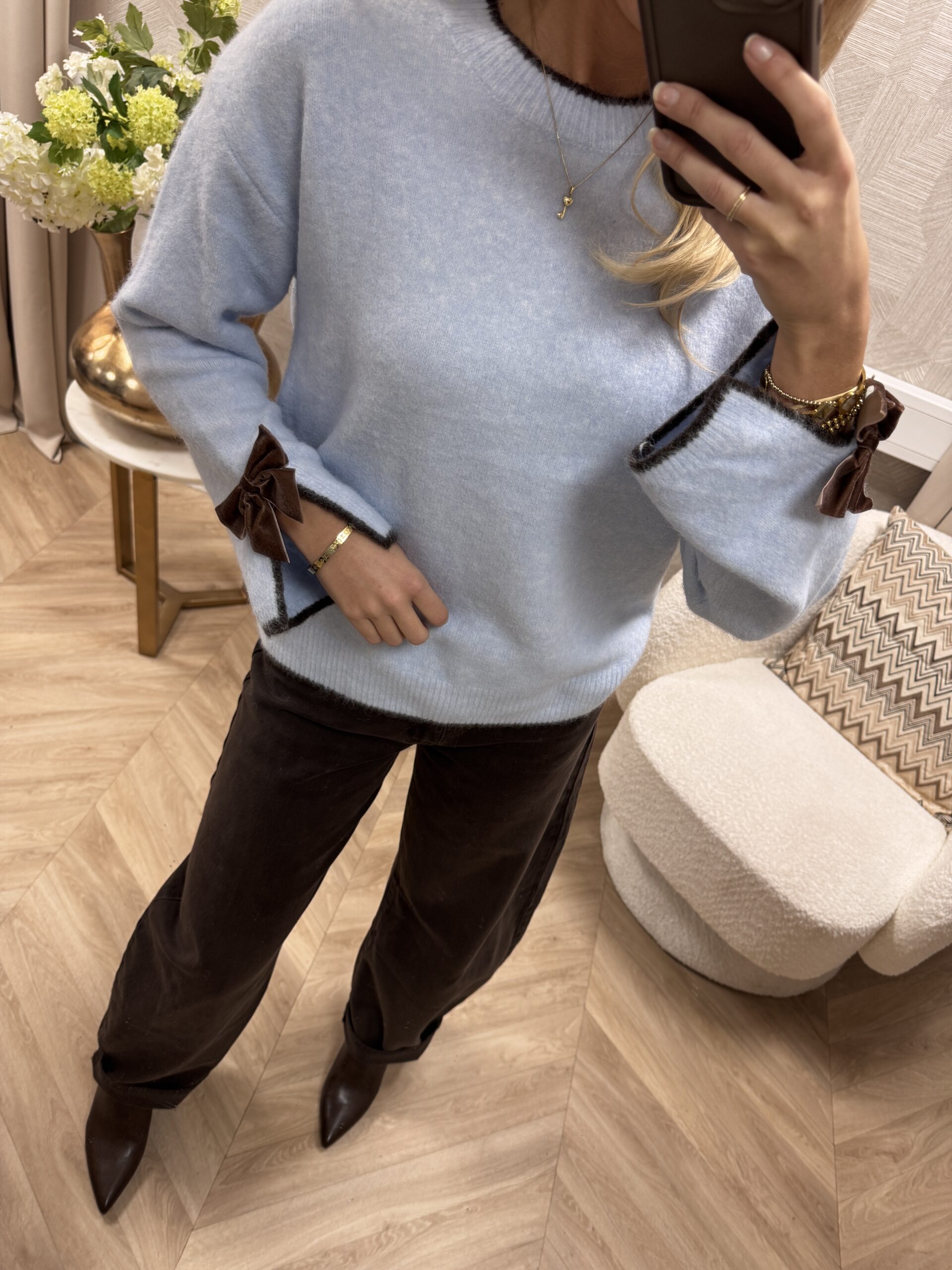Trui Bow Detail Blauw/Bruin