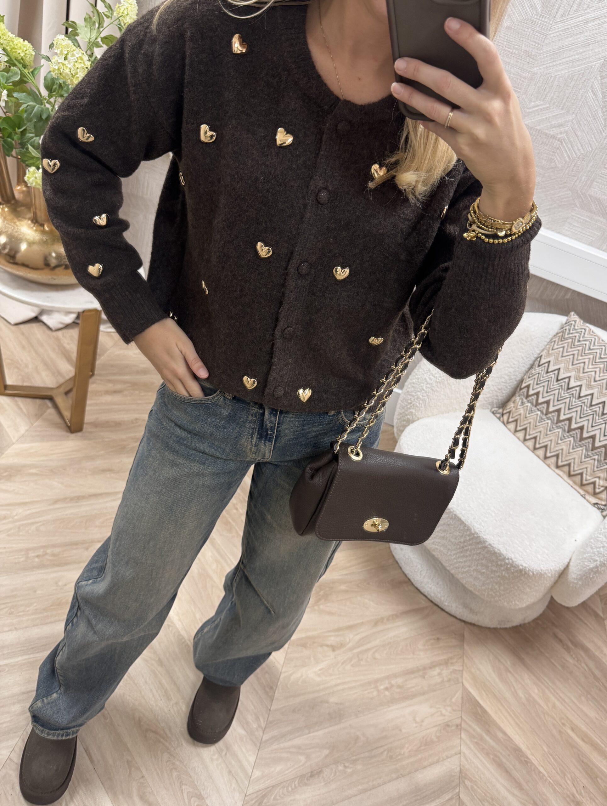 Dit vestje is een echte eyecatcher door de gouden hartjesknopen. Een zachte knit met een vrouwelijke fit die je zowel open als dicht kunt dragen.